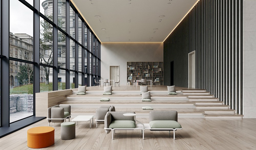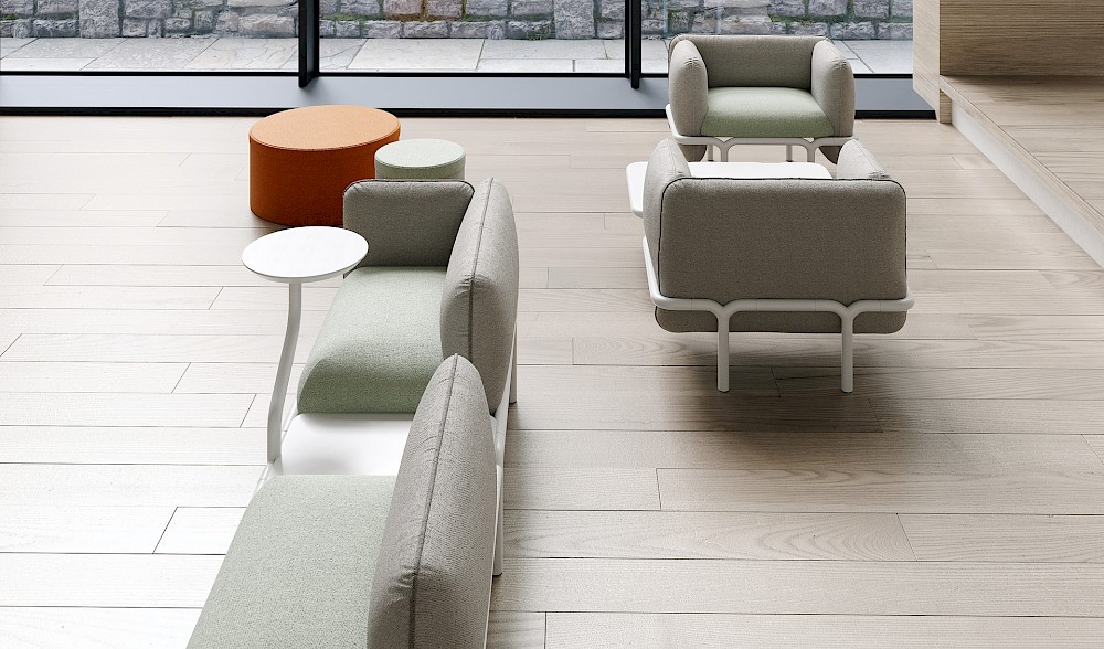 Bomm has been designed with particular attention to comfort: the large seat is suitable for any kind of users and its soft armrests make this sofa perfect for relaxing breaks and informal work sessions.