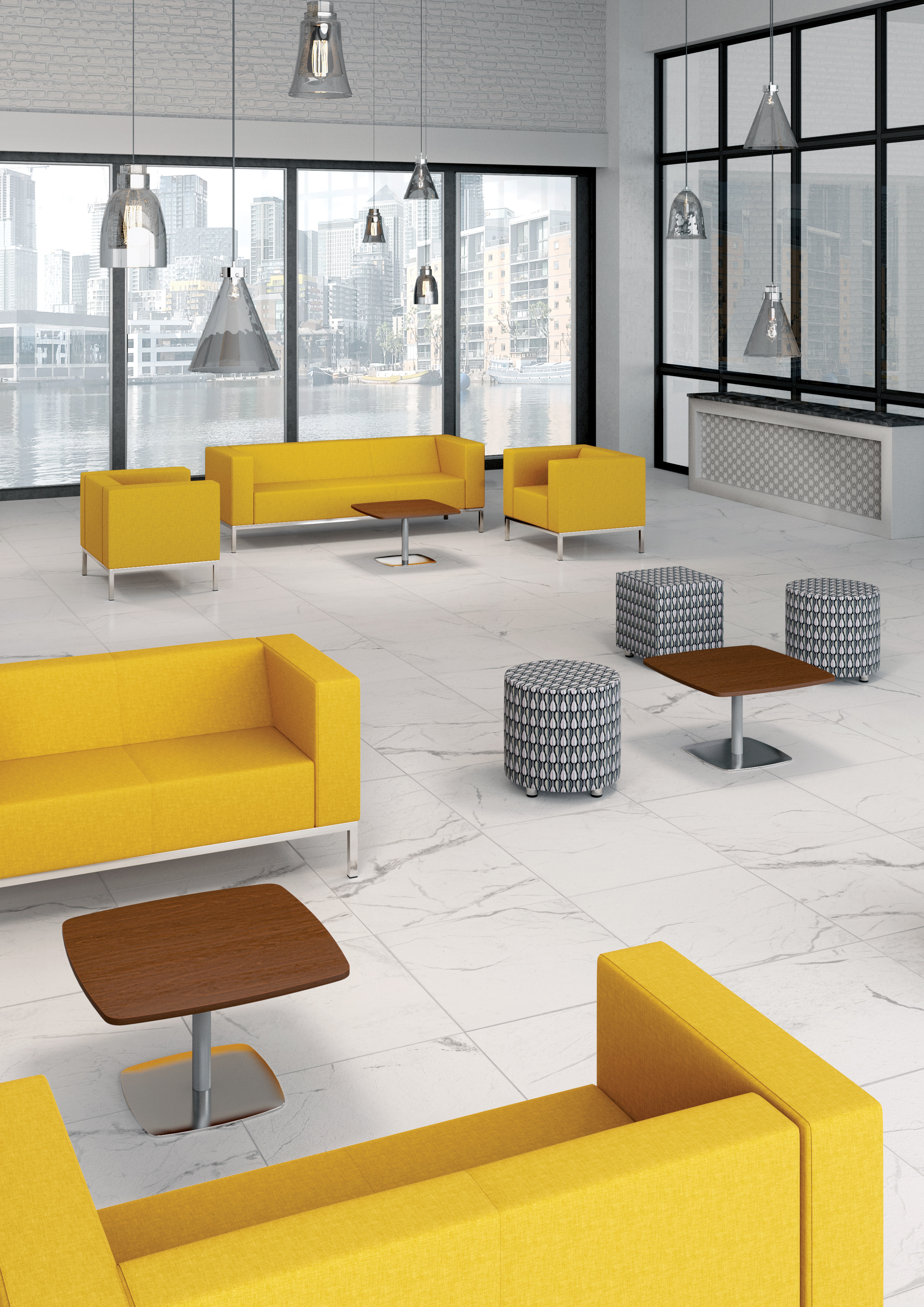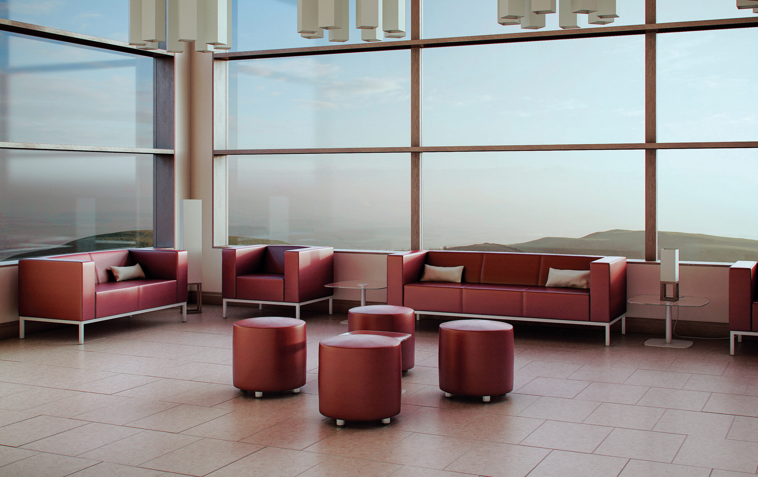 Box represents function and design, providing a robust solution for open space sitting. The simplicity of its form is achieved by the angular construction. The combination of leather and satin chrome finish create a unique style.