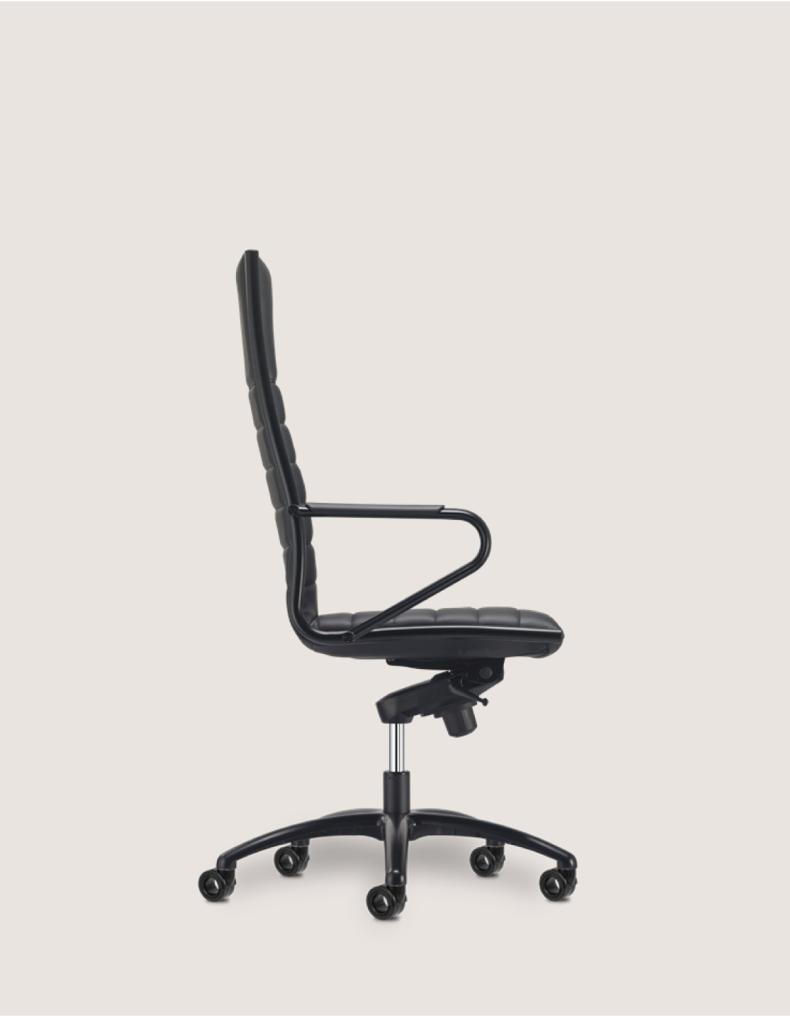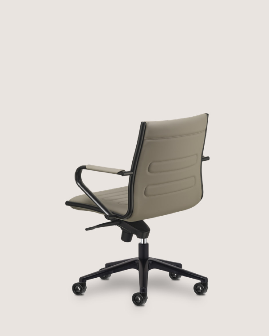 The Classic collection furnishes the office space with high-backed executive seating, managerial and meeting seating with fixed feet and stools, featuring an understated design and luxury covers, with a choice of eight catalogue finishes, fabric and leather, in numerous colour versions. The frame, in chromed steel or matte black coated, also has a base with five spokes available in matte black aluminium and gloss aluminium finishes.