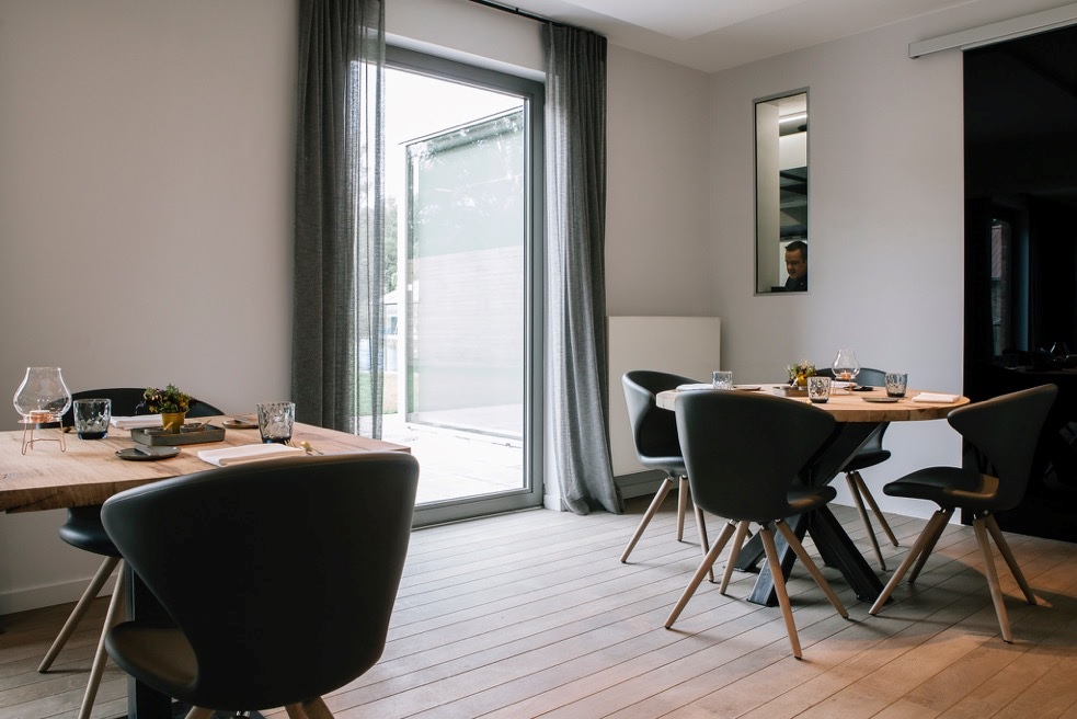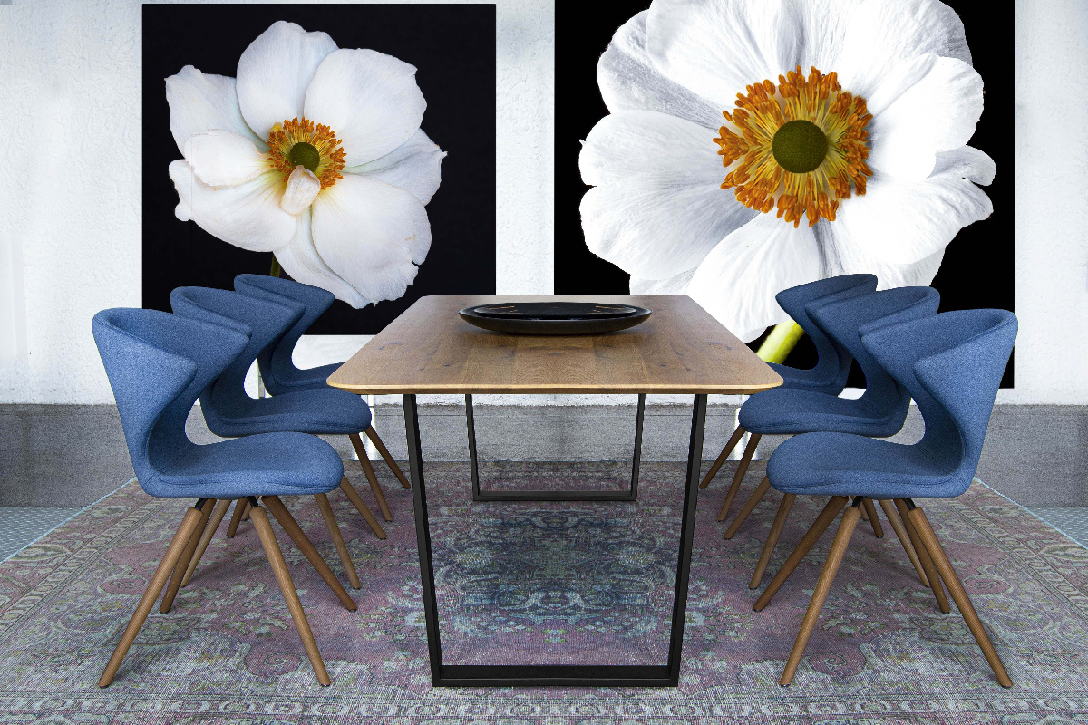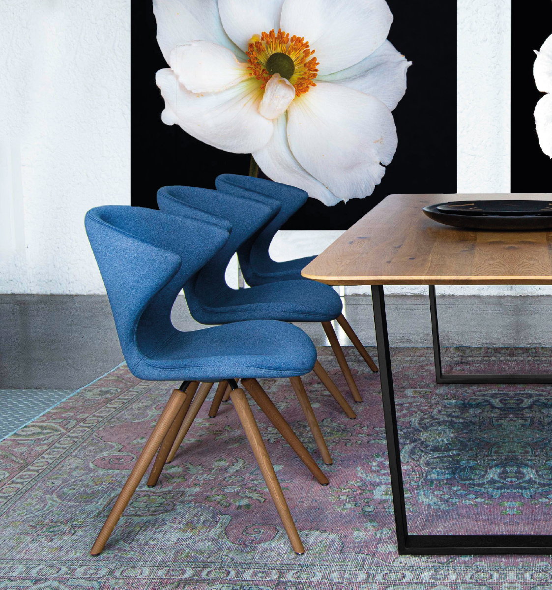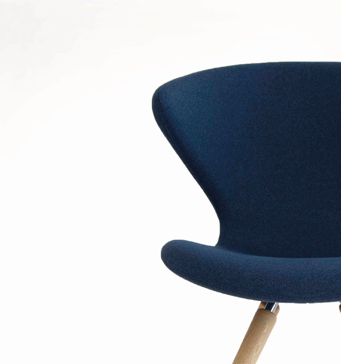 Chair with legs available in polished or matt chrome steel, in brushed stainless steel or in solid wood. Shell in skin injected foam 13 standard colours. The stool with central column in matt chrome finish is height-adjustable and has a swivel seat.