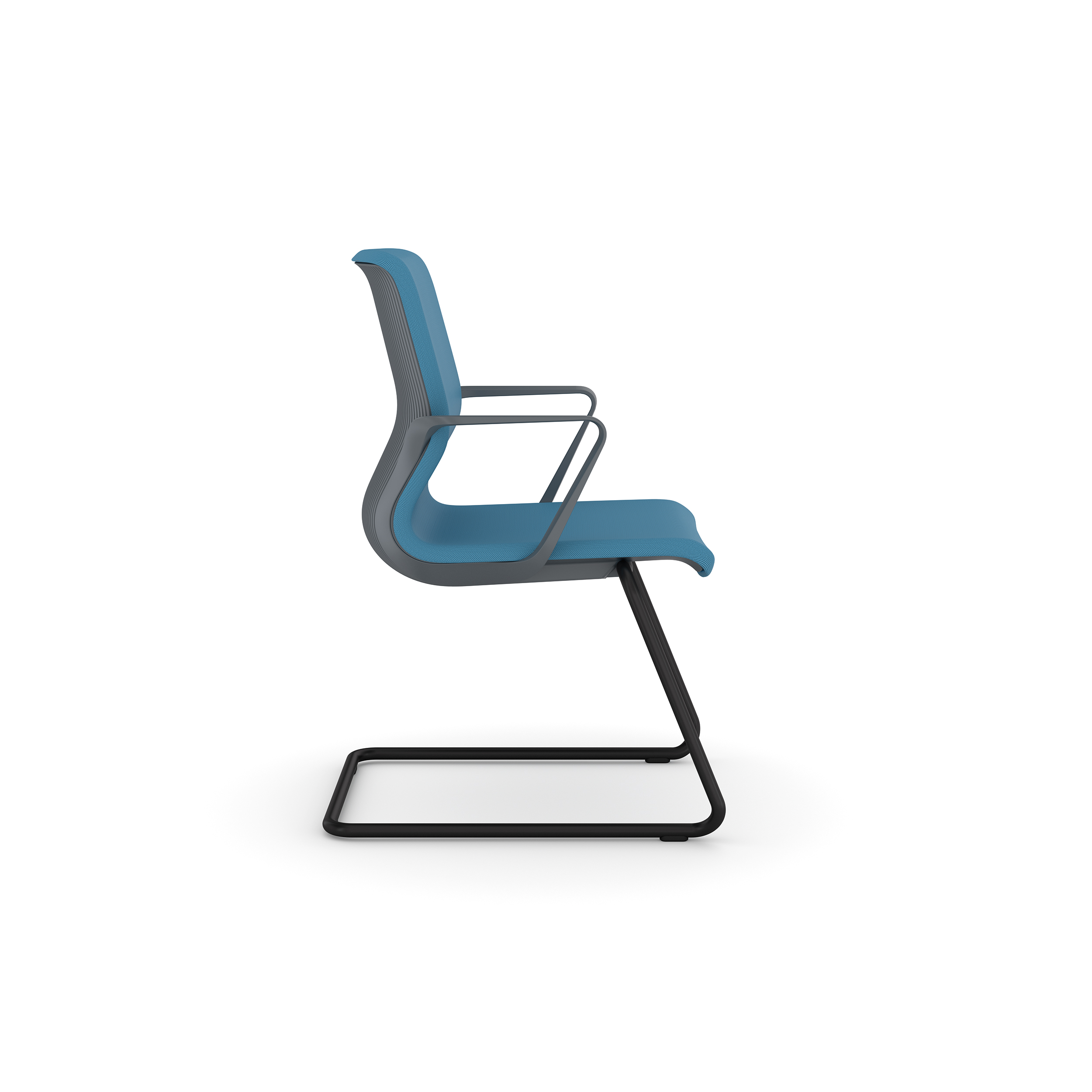 The cantilever visitor chair with its 22 mm tubular steel frame is a perfect fit for modern office environments. The seat cushion is made of high-quality polyurethane moulded foam, and the back is a mesh panel.
