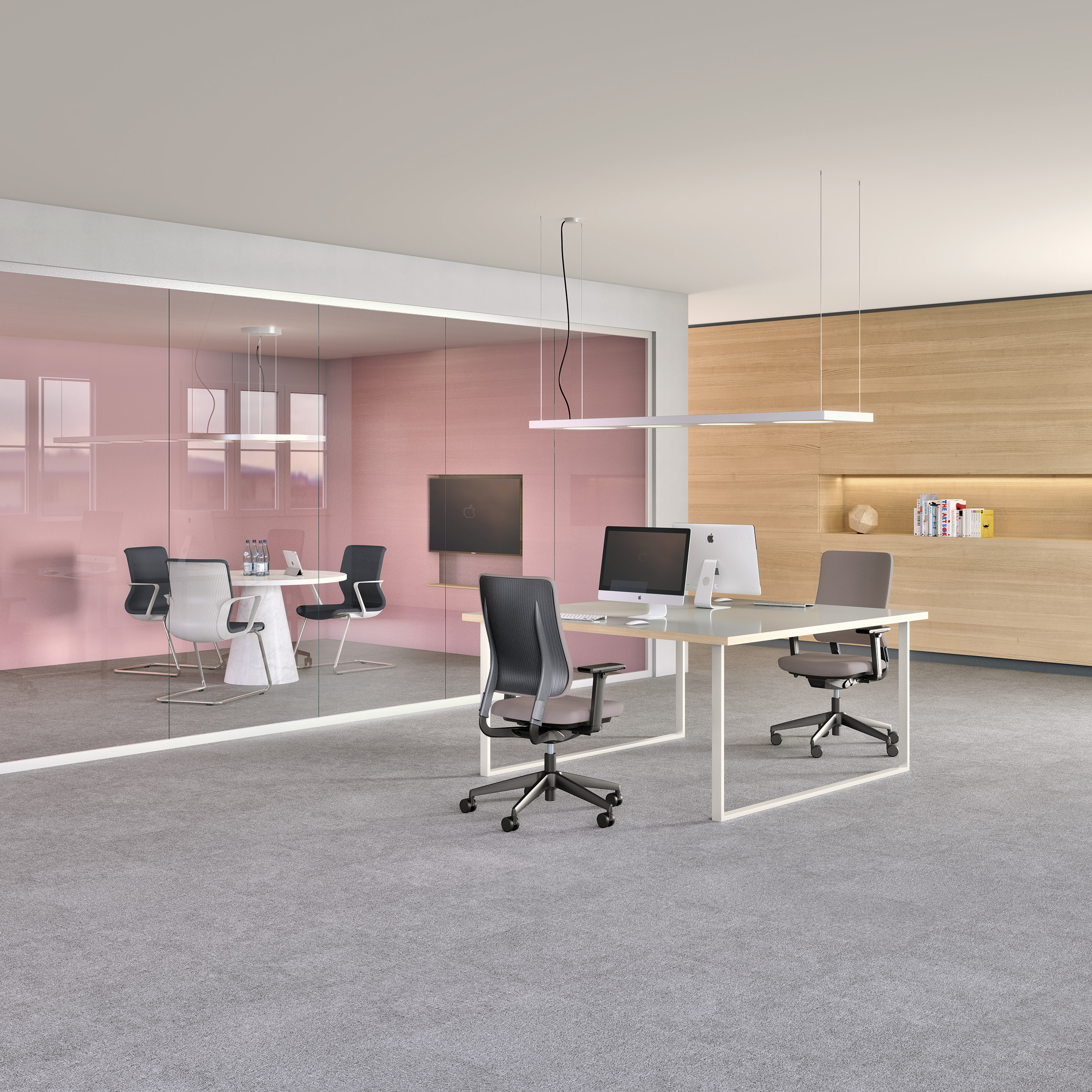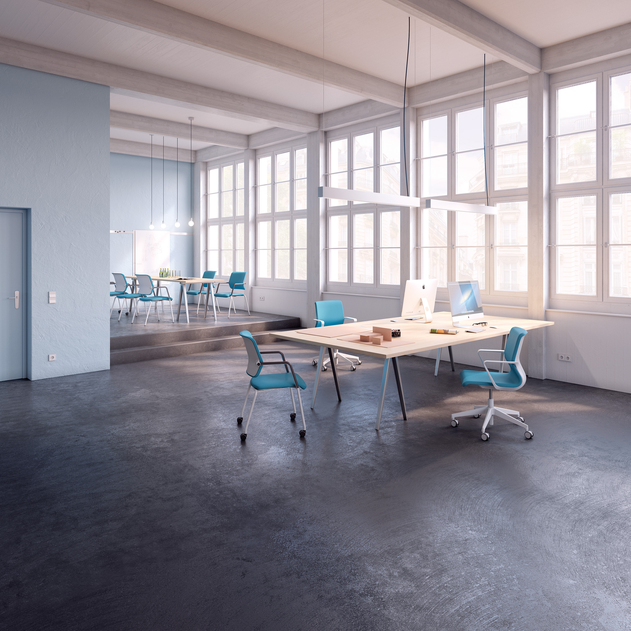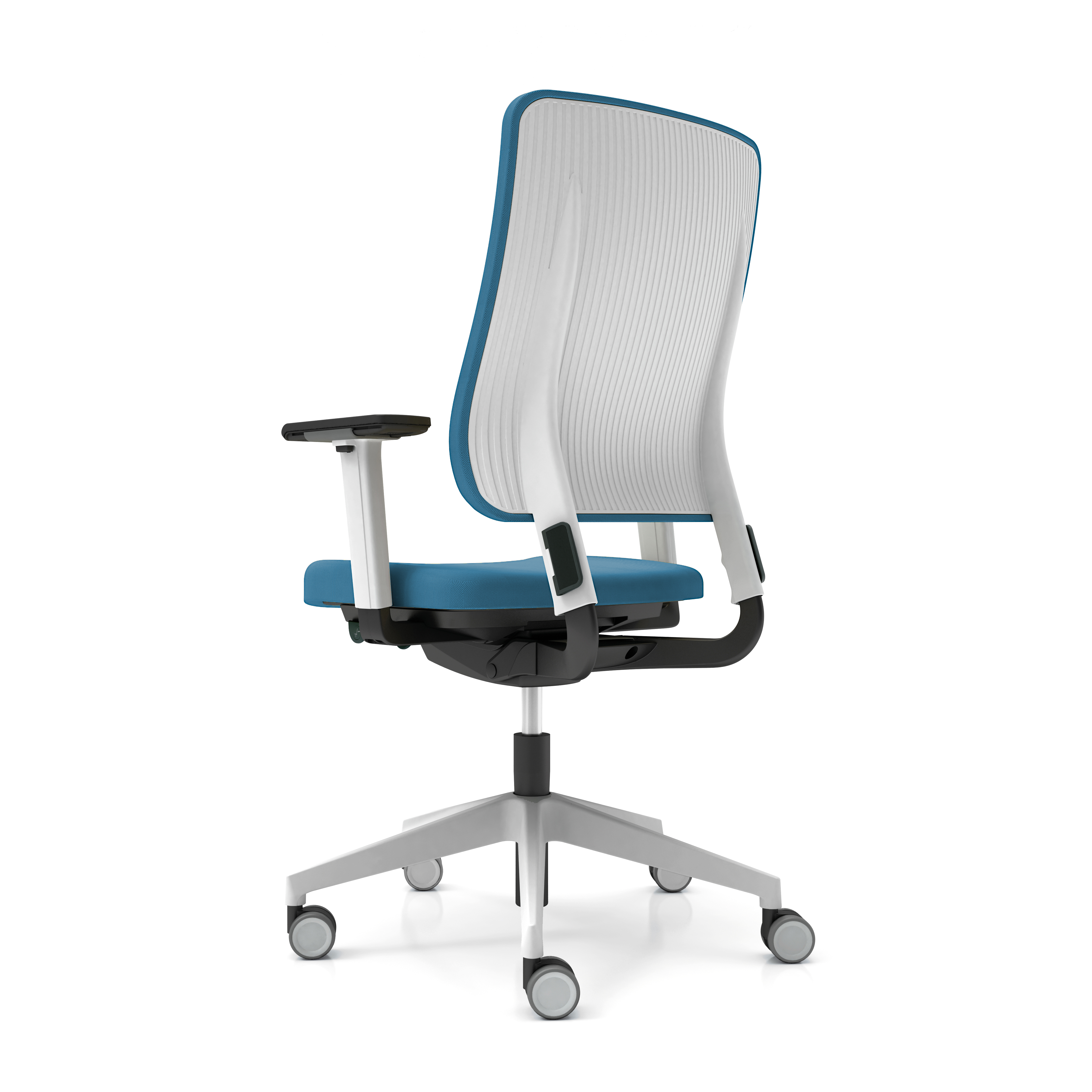 Drumback combines the benefits of upholstered and mesh back chairs. The mesh/fabric is stretched ? a bit like on a drum ? across a polypropylene back rest. This gives users the ventilated comfort of a mesh back combined with the stability of a single-piece backrest shell.