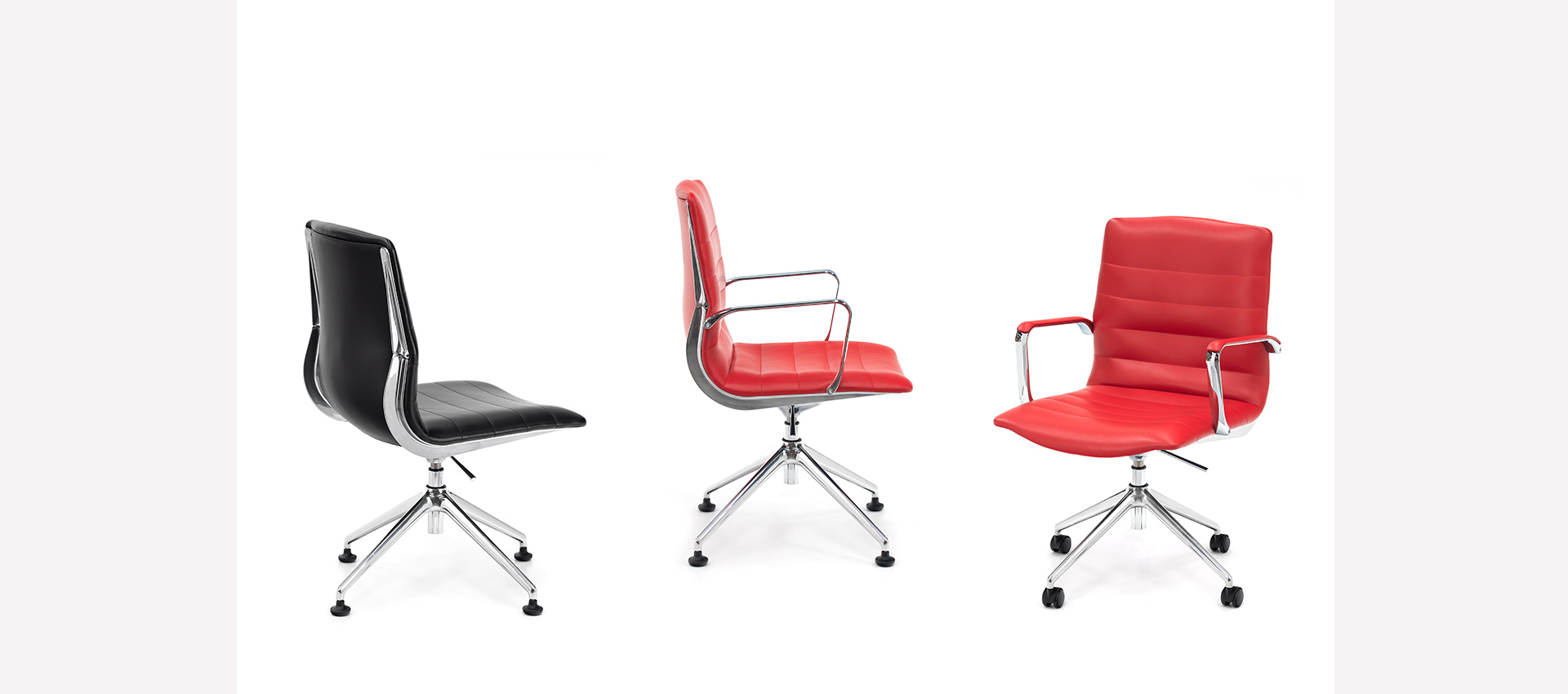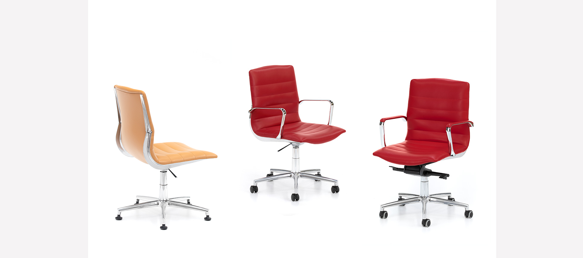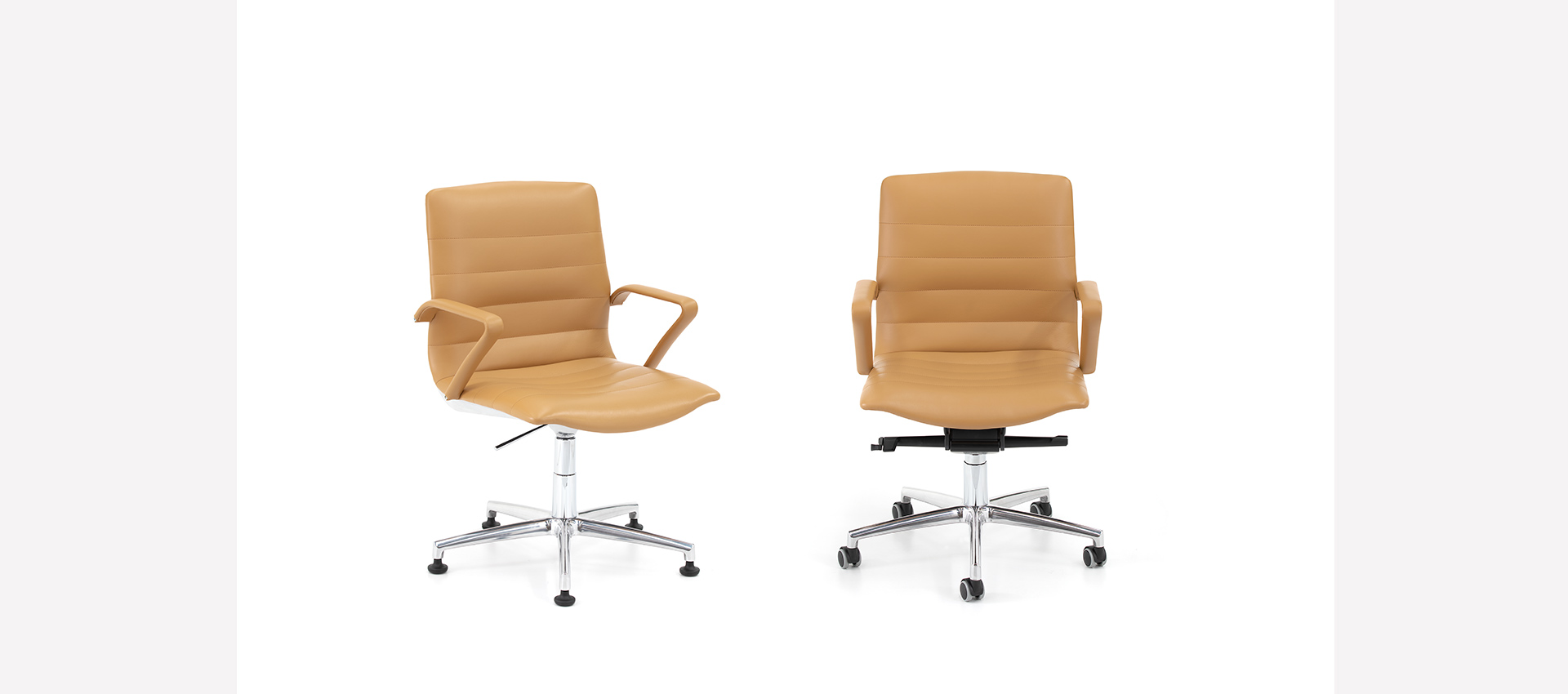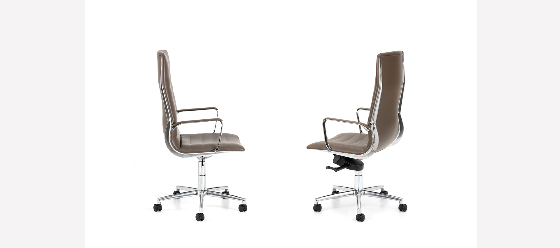 The exclusive combination of full-grain leather with metal elements enhances the sober and elegant design of the Epico chairs. The support frame of die-cast aluminium, designed to guarantee a proper posture, allows an independent tilting of the backrest. The armchairs in the Epico collection are available with armrests fully covered in leather or armrests in chrome-plated steel with leather top.