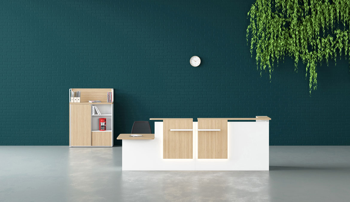With an extensive selection of freestanding modules to adjoin, GRETA reception counters adapt seamlessly to your needs. Beyond its modern design and matching storage solutions, GRETA?s practical scalloped worktop edges allow for the integration of computer monitors.