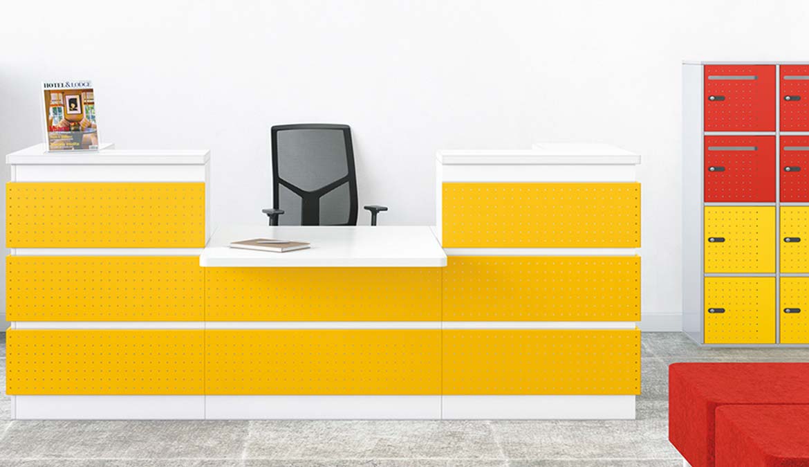 The GUEST range of reception counters is ultra-customisable thanks to its variety of modules, finishes and extensive choice of colours and optional complements. It will allow you to create a unique reception space that truly reflects the identity of your company.