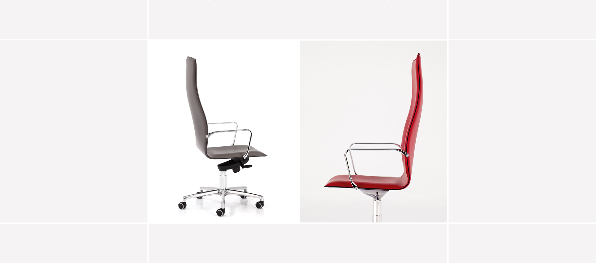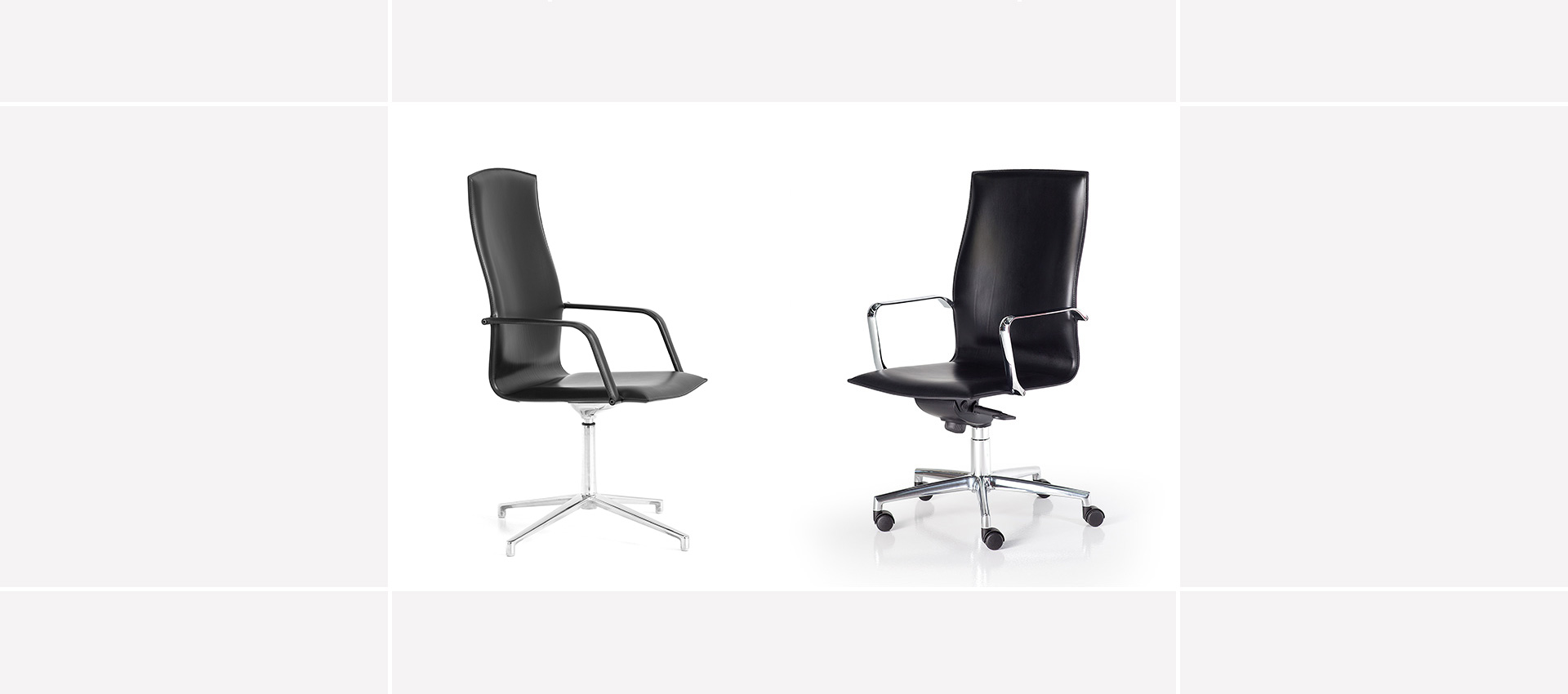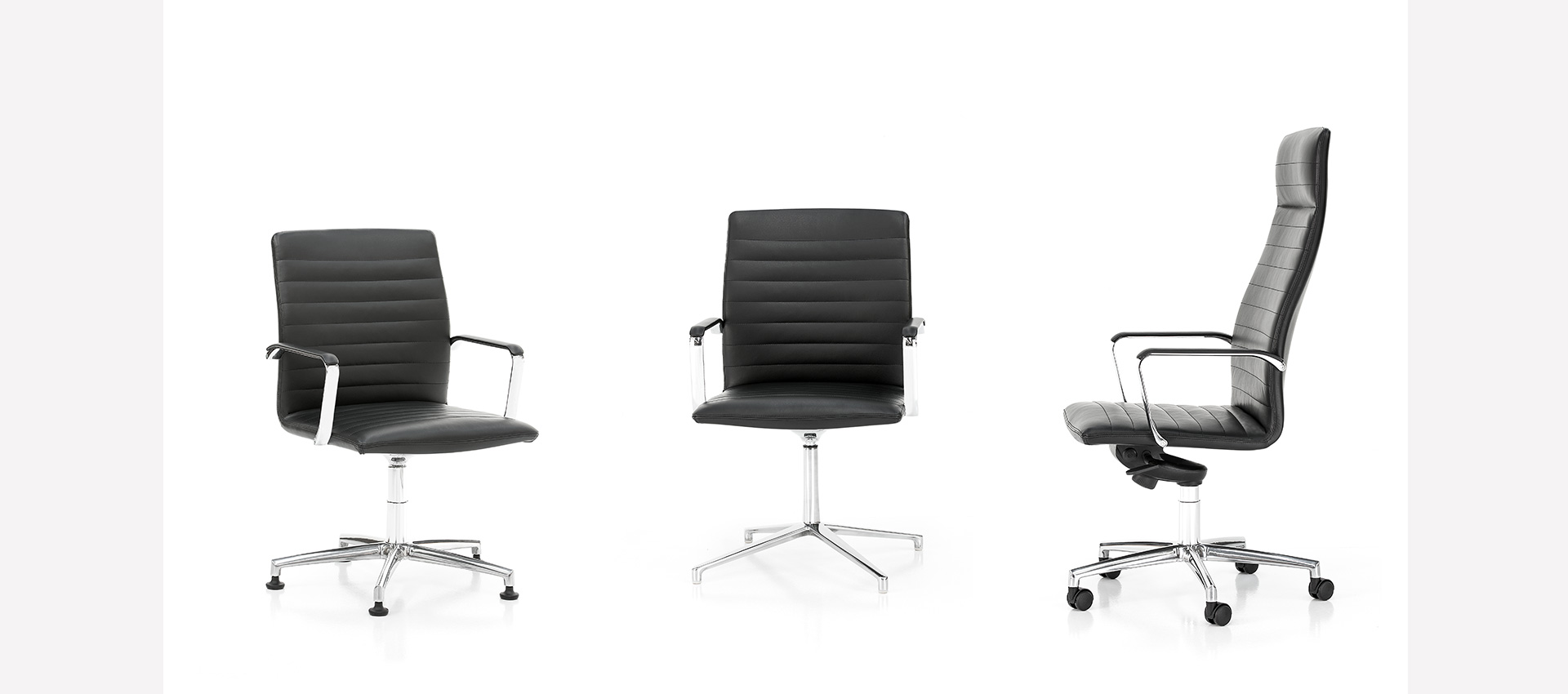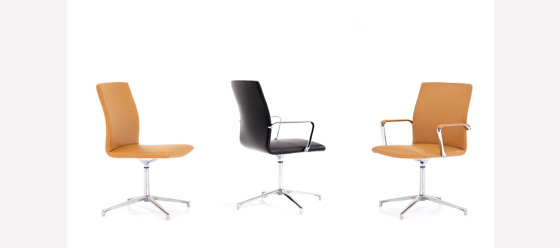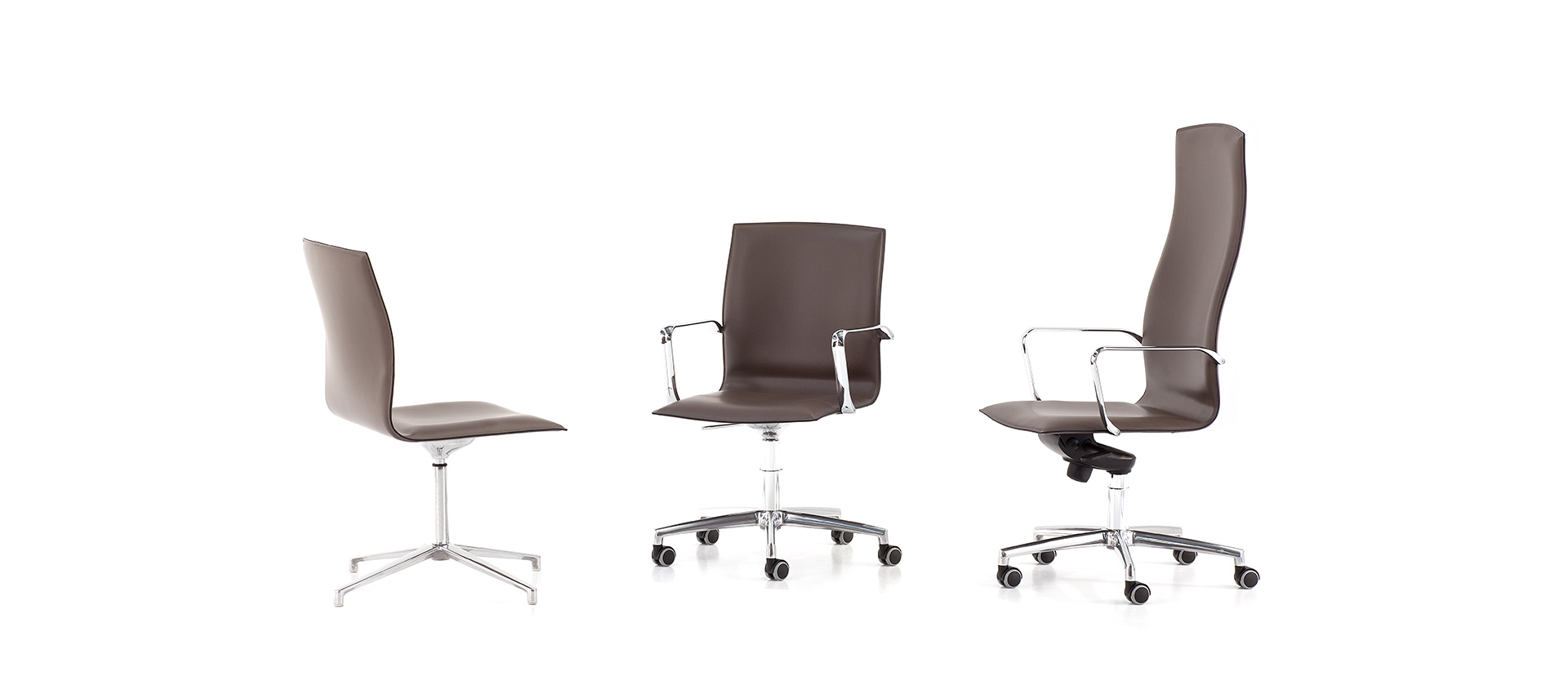 The Harmony Soft series has been studied for elegant and refined furniture arrangements, for the executive office and important meeting rooms. The comfortable anatomic line is enriched with high quality materials, such as steel, aluminium and hide handcrafted with the well-known Polflex finishes. The Harmony collection is also available with 2.5 mm thick hide upholstery, saddle finish and tonal or colour contrast stitching. The armrests come in two versions: fully upholstered in hide or in chromed aluminium with optional upper insert in leather (not in hide).