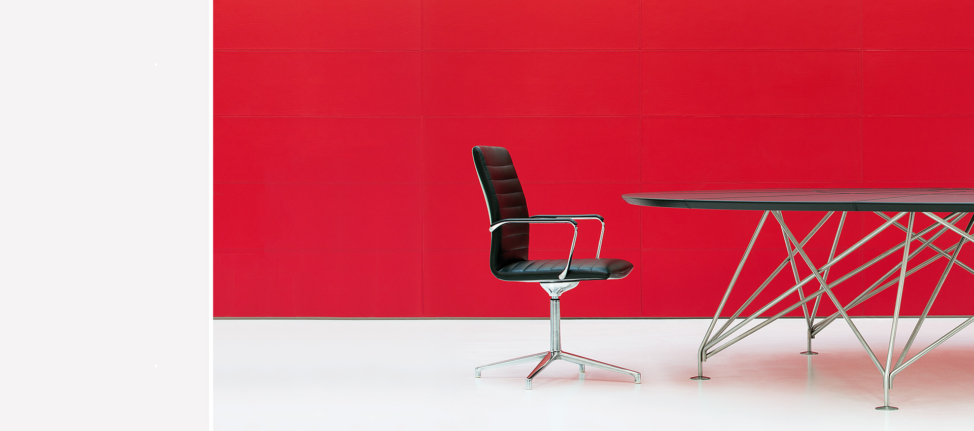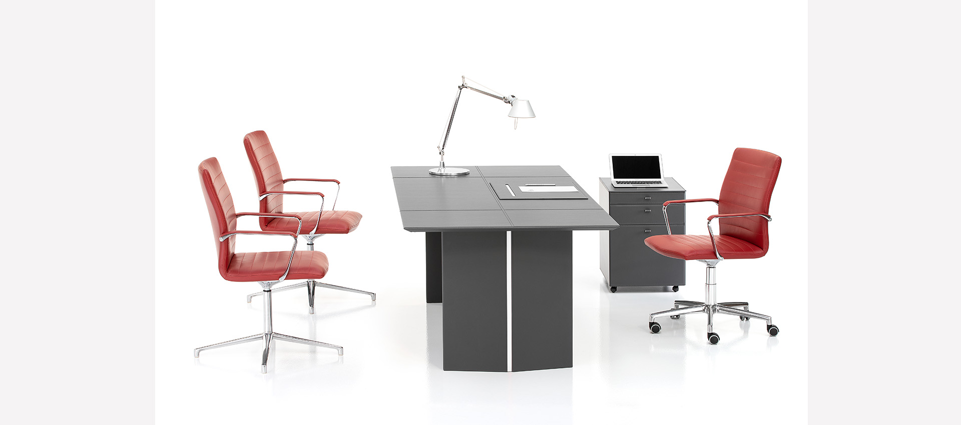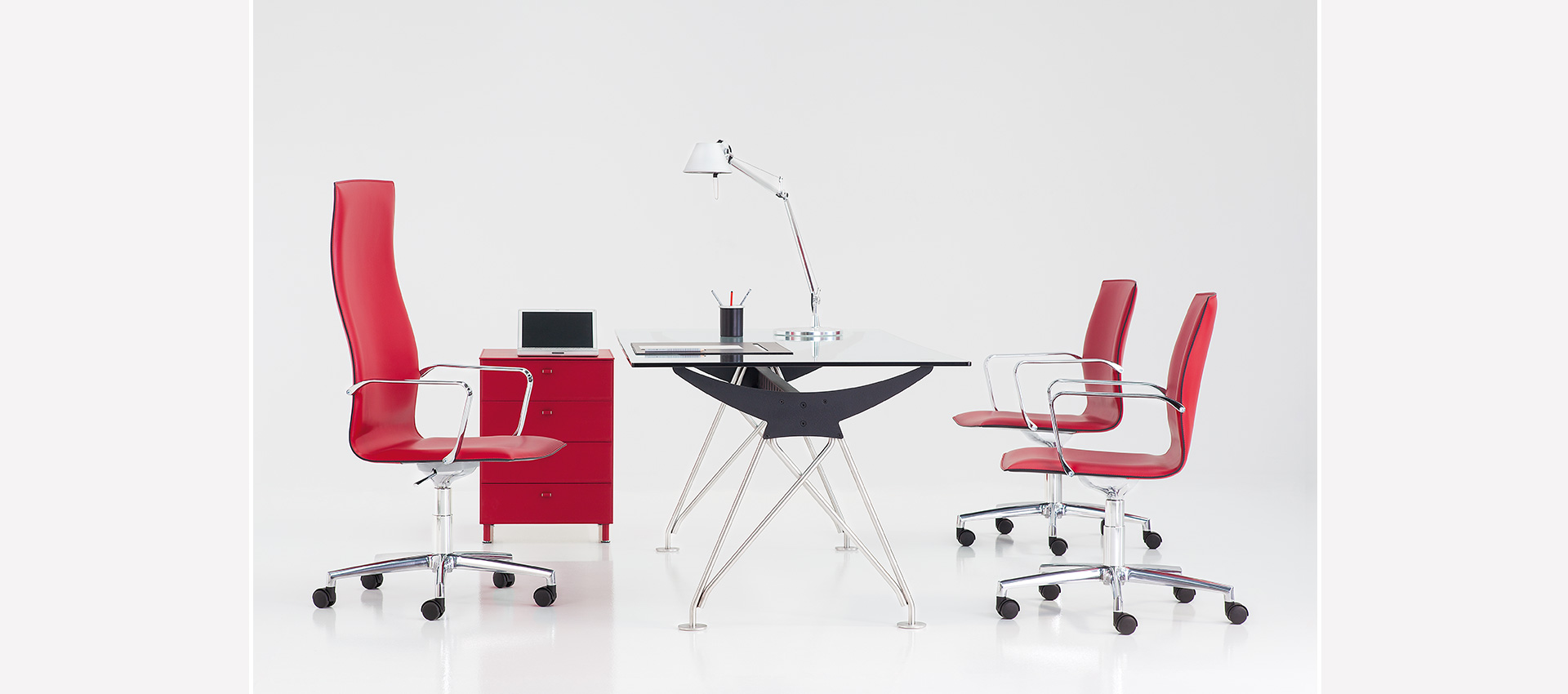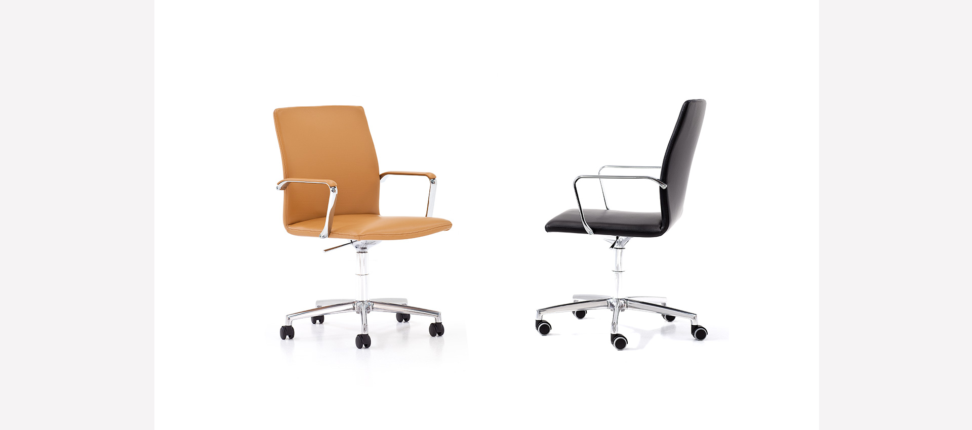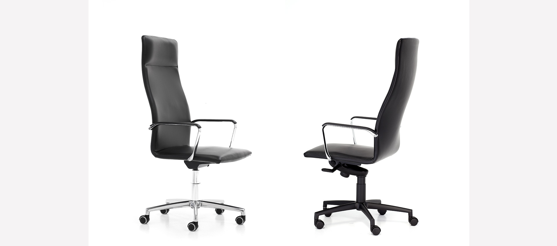 The Harmony Soft series has been studied for elegant and refined furniture arrangements, for the executive office and important meeting rooms. The comfortable anatomic line is enriched with high quality materials, such as steel, aluminium and hide handcrafted with the well-known Polflex finishes. The Harmony collection is also available with 2.5 mm thick hide upholstery, saddle finish and tonal or colour contrast stitching. The armrests come in two versions: fully upholstered in hide or in chromed aluminium with optional upper insert in leather (not in hide).