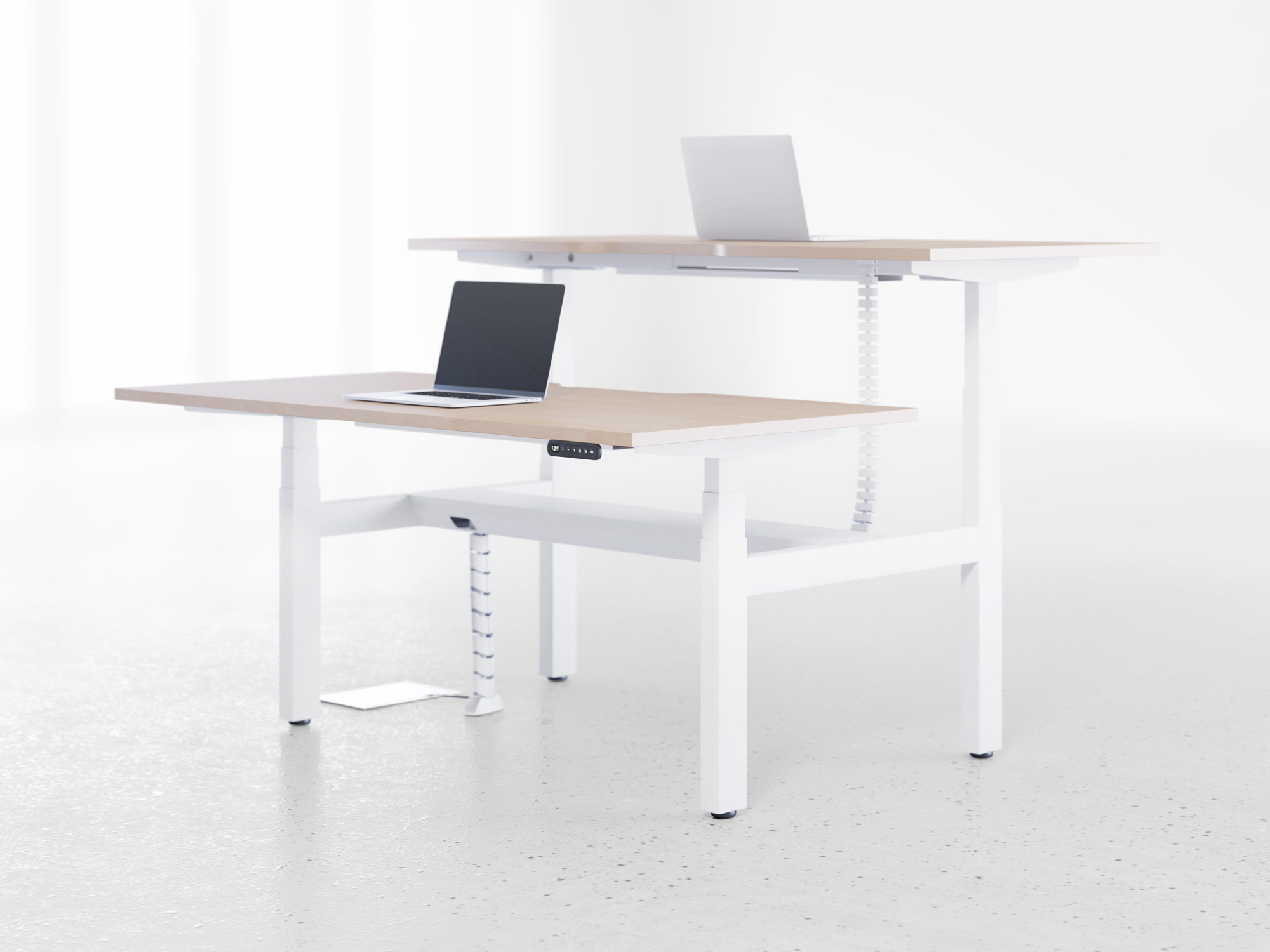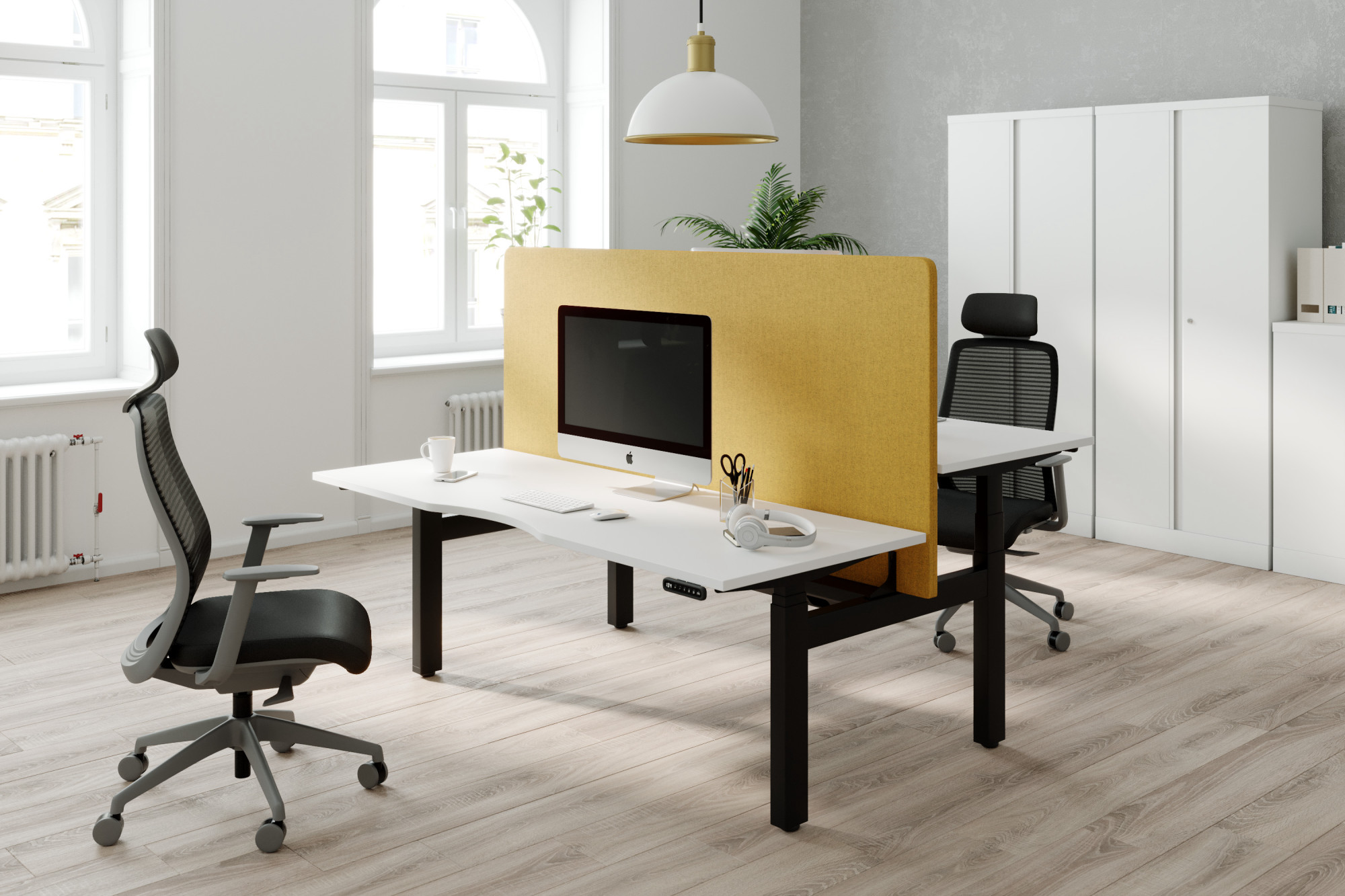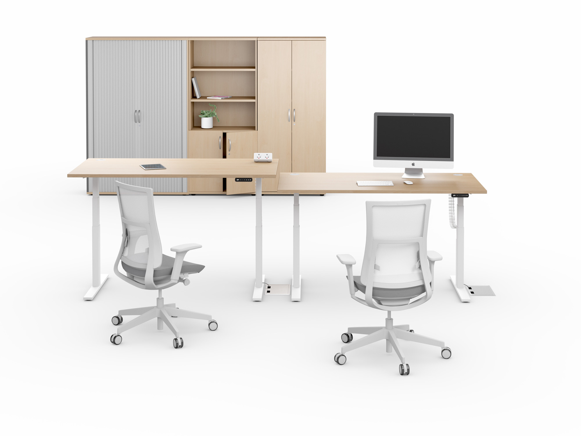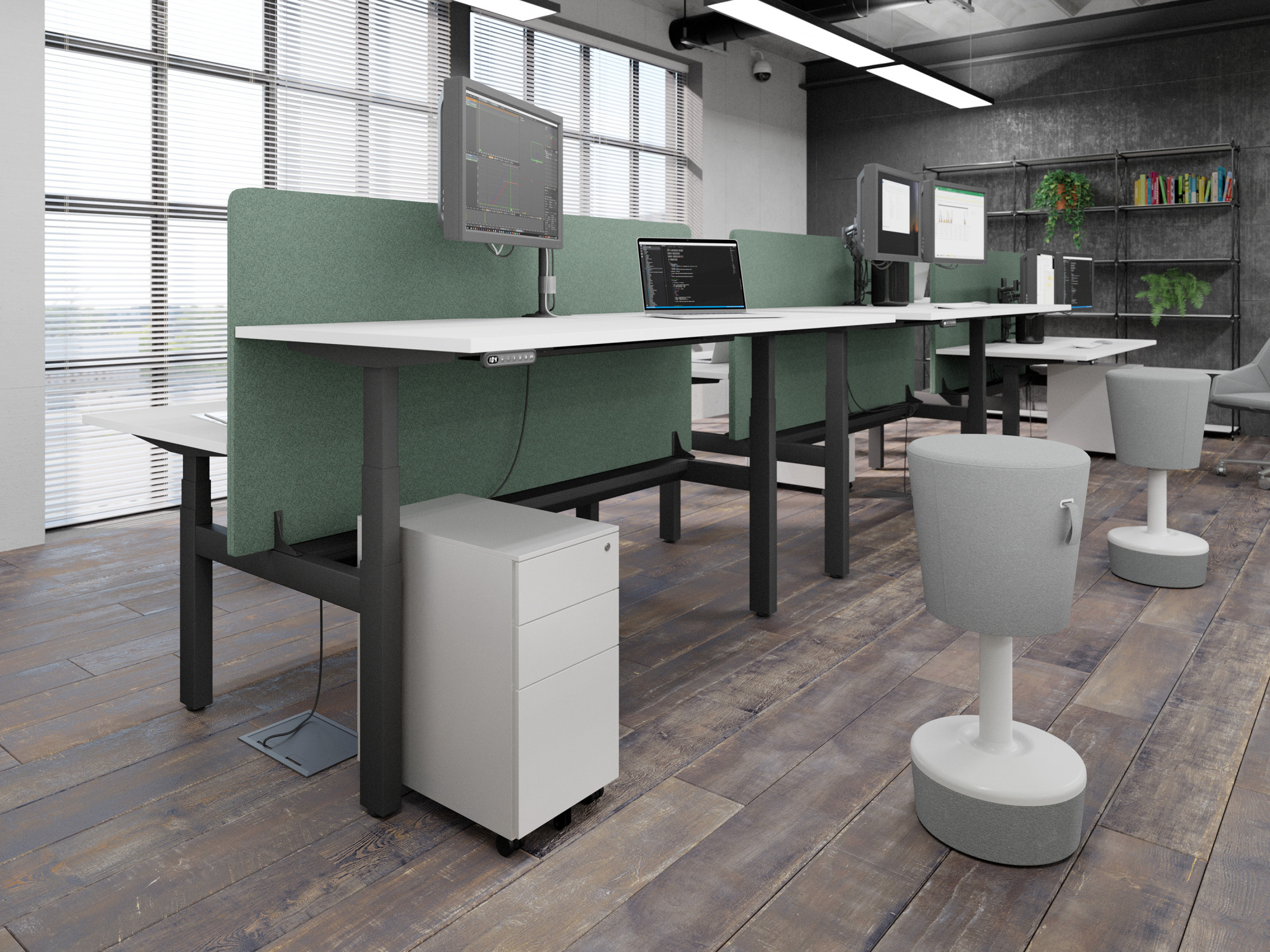 Leap is an electrically adjustable range of desking comprising of a single stand-alone desk & bench desk. The frames can be manually expanded to accommodate tops from 1200mm to 1800mm in width and electronically adjusted from 655 to 1255mm in height, all at the touch of a finger with the touch-sensitive controls. Each user can adjust their own desk height individually via the memory master control unit. Leap also features anti-trap technology meaning if it encounters an obstruction as it is going down it will stop and retract 2cm.