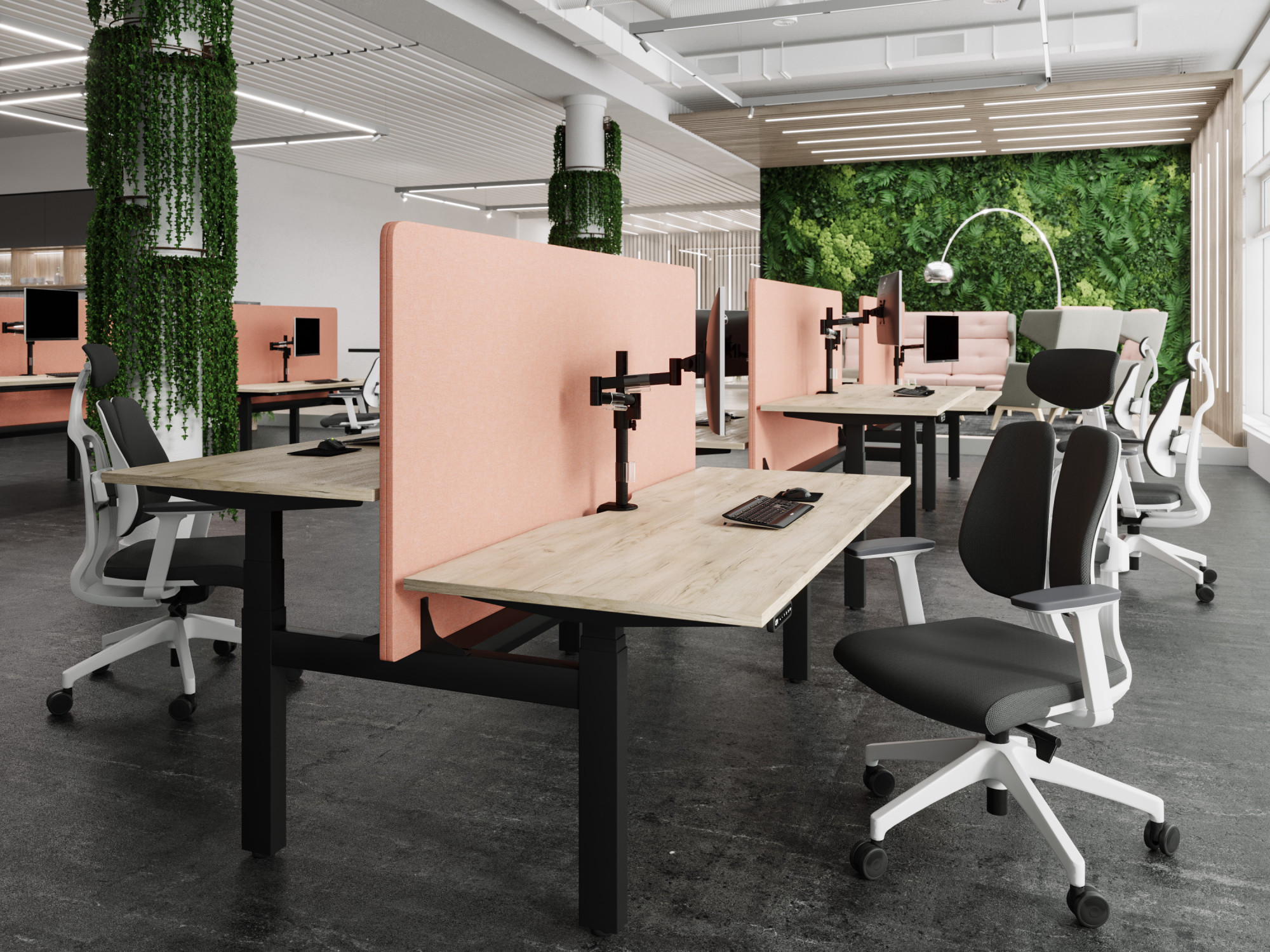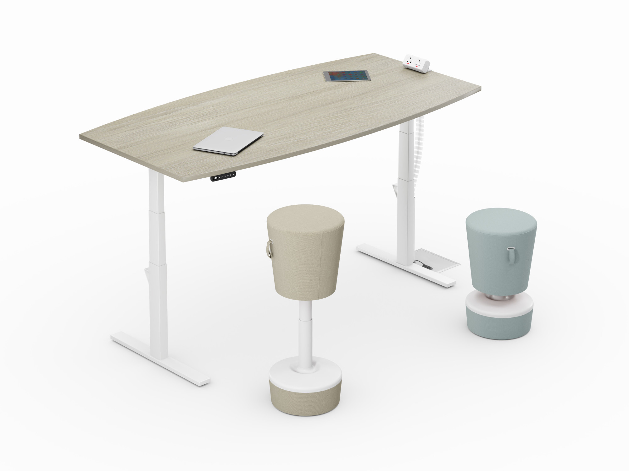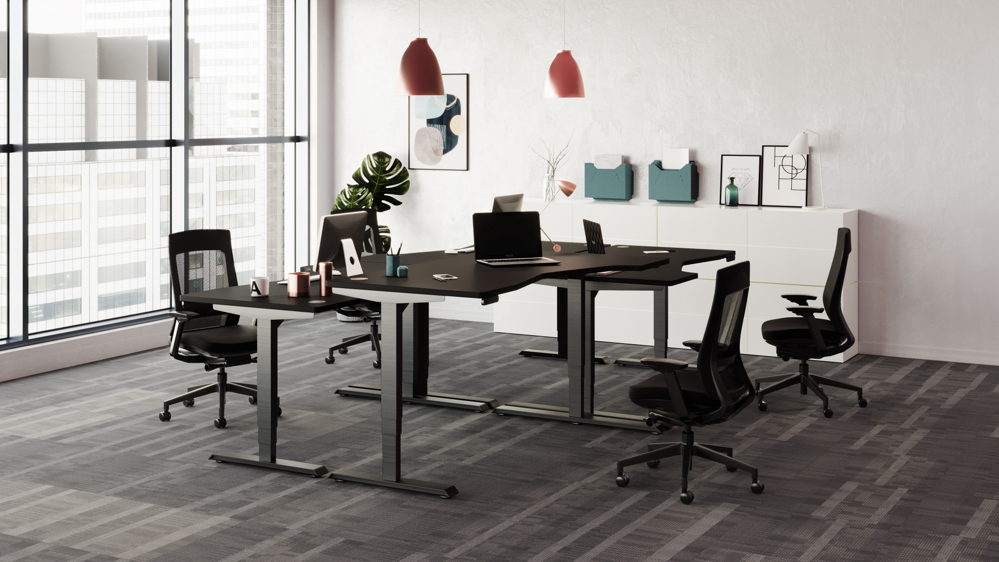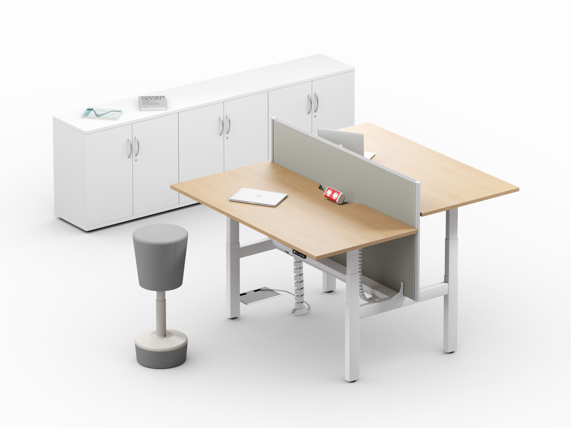 Leap is an electrically adjustable range of desking comprising of a single stand-alone desk & bench desk. The frames can be manually expanded to accommodate tops from 1200mm to 1800mm in width and electronically adjusted from 655 to 1255mm in height, all at the touch of a finger with the touch-sensitive controls. Each user can adjust their own desk height individually via the memory master control unit. Leap also features anti-trap technology meaning if it encounters an obstruction as it is going down it will stop and retract 2cm.
