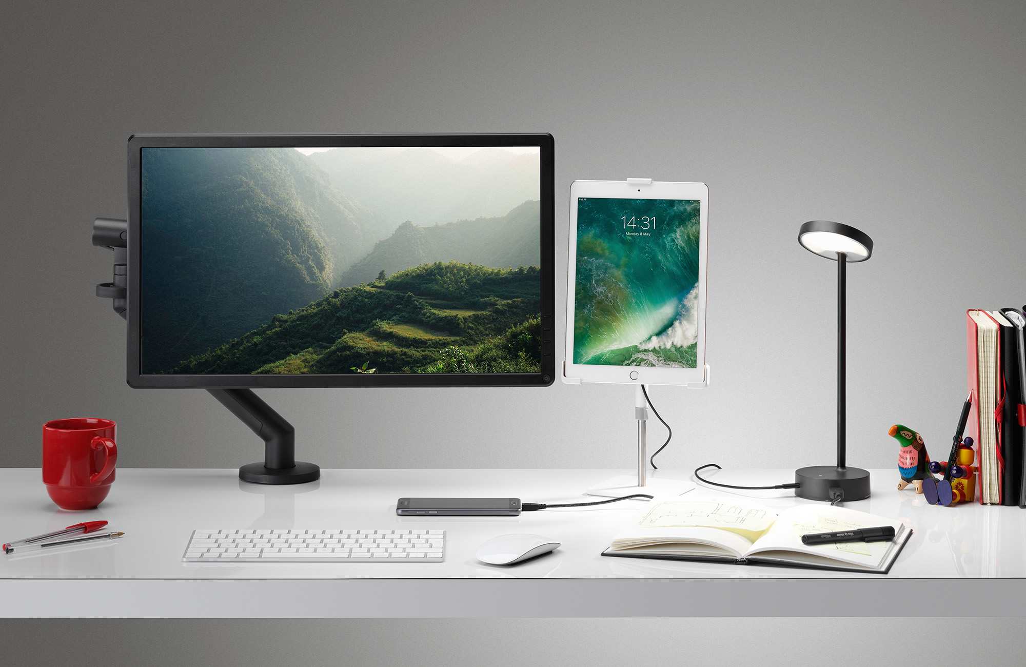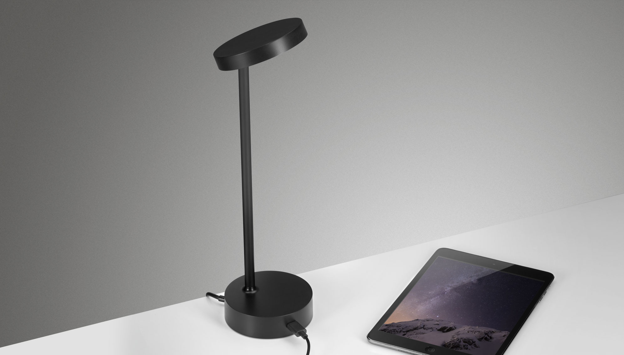 An elegant personal light with integrated USB charging facility. Lolly is a personal desk light that gives power to the user through its integrated USB type A and type C ports, offering convenient charging for personal devices. Its head can be angled to illuminate areas of focus, and because different tasks have different asks, Lolly has a four-stage dimmer to enable variation in brightness.