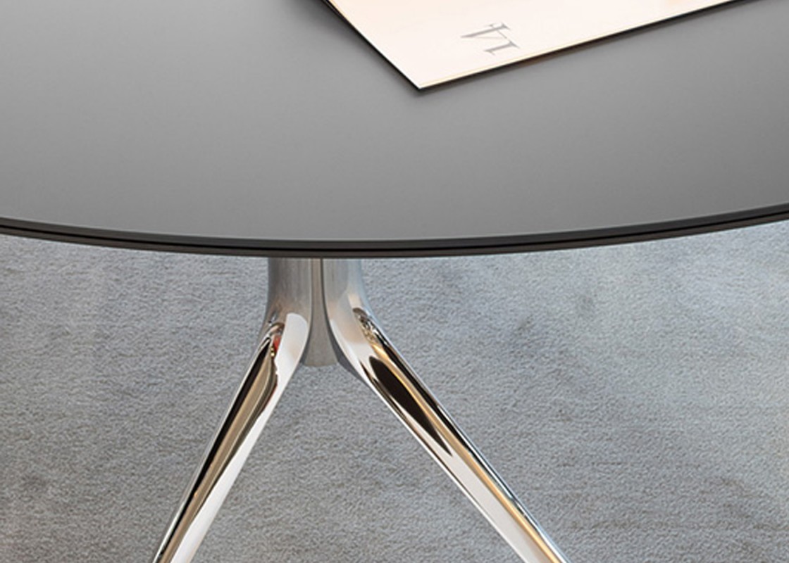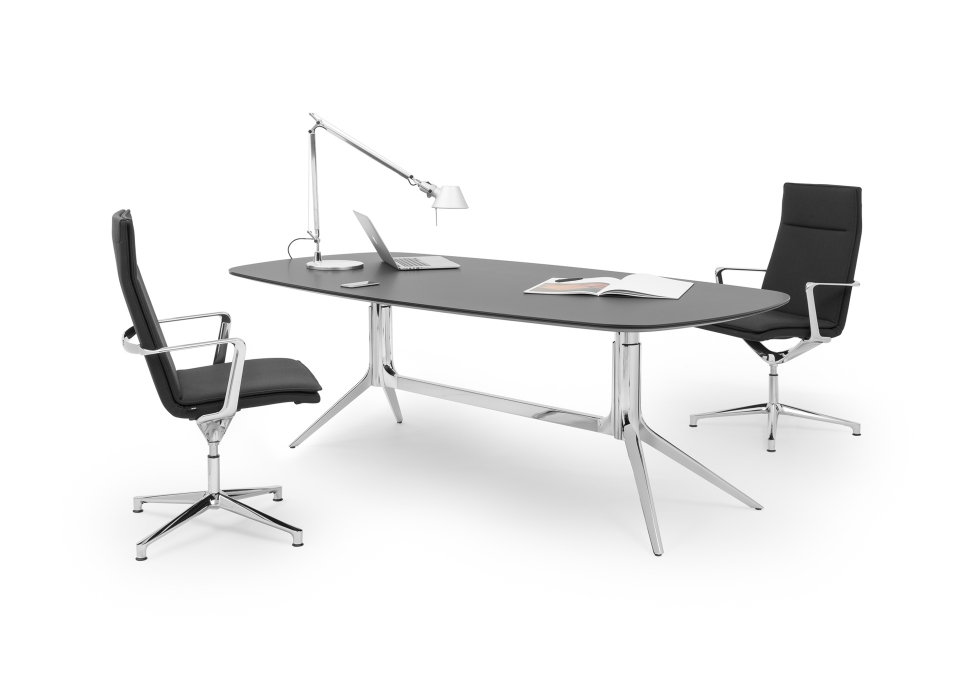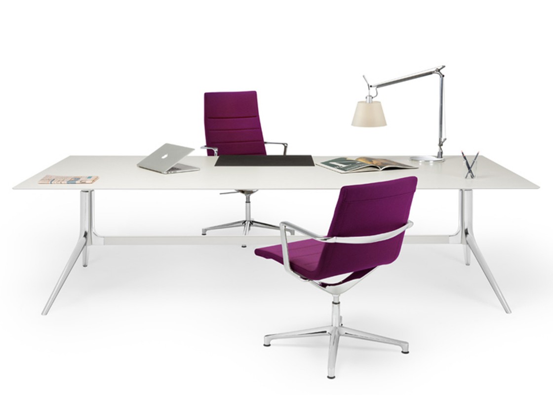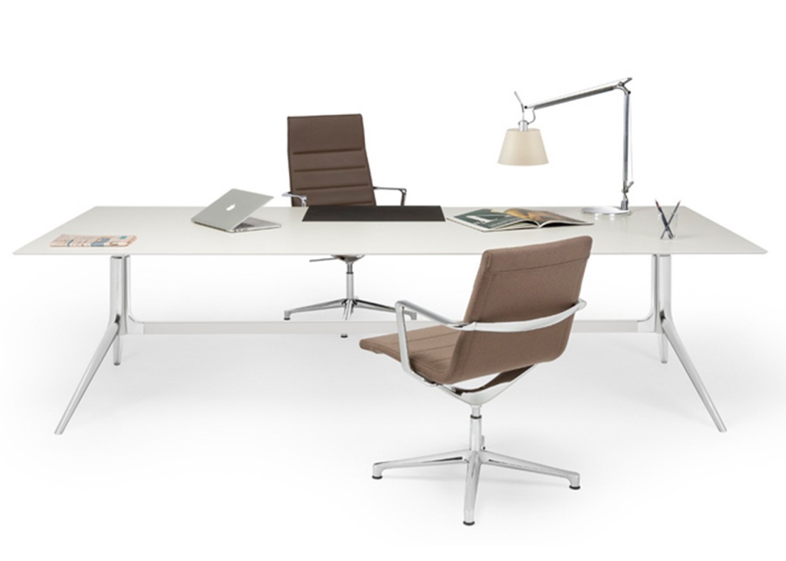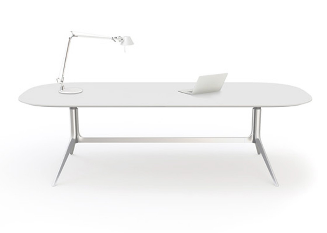 Every detail of NoTable speaks of subtle sophistication embodied by apparent simplicity. Die-cast aluminium legs stem dynamically from the floor to give the table its remarkable lightness. The legs are attached to a tubular vertical frame with an adjustable inclination that showcases the discrete yet high level engineering of NoTable. NoTable is a system that can assume a myriad of configurations. It can be an efficient and elegant single desk, or become a large table, designed to meet the need for modern areas where work groups can operate.