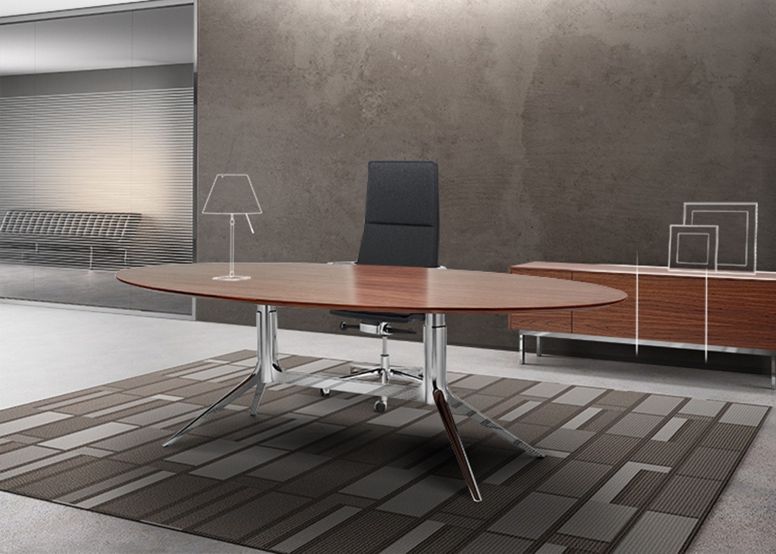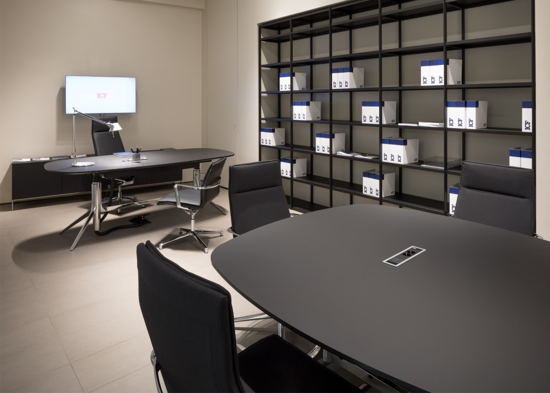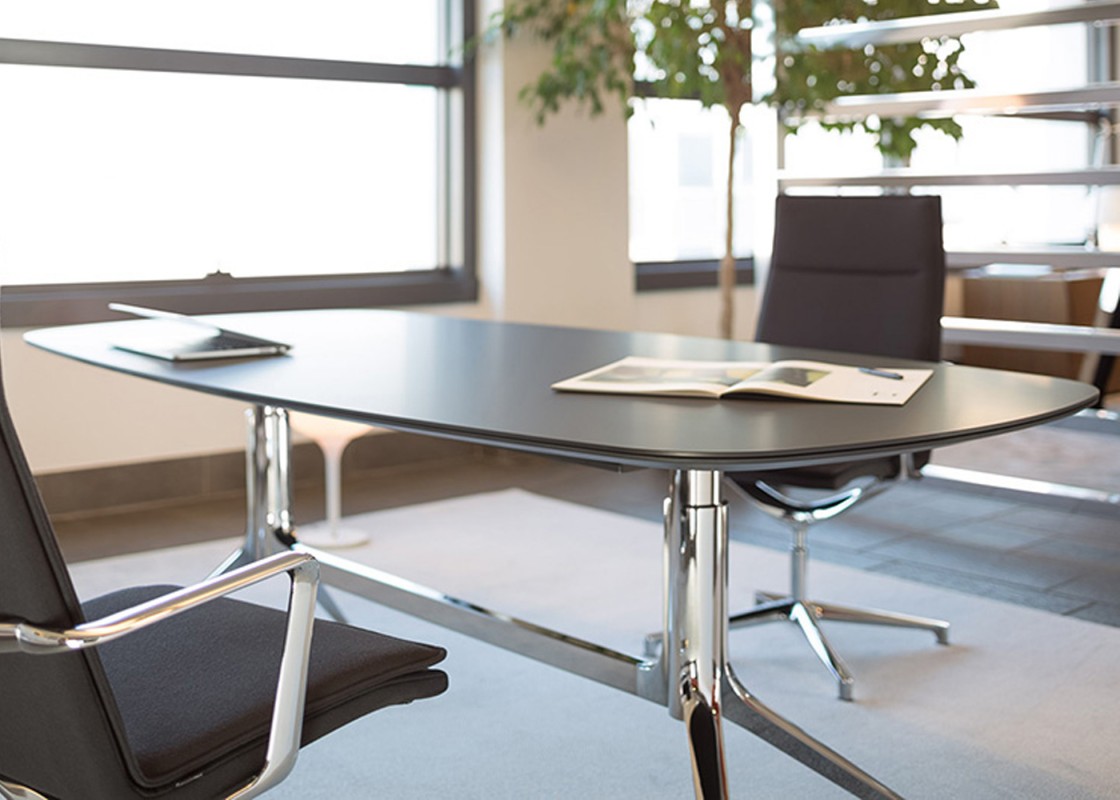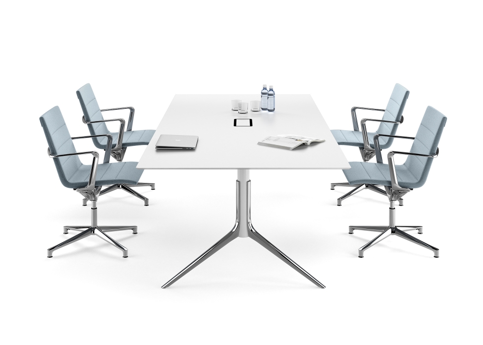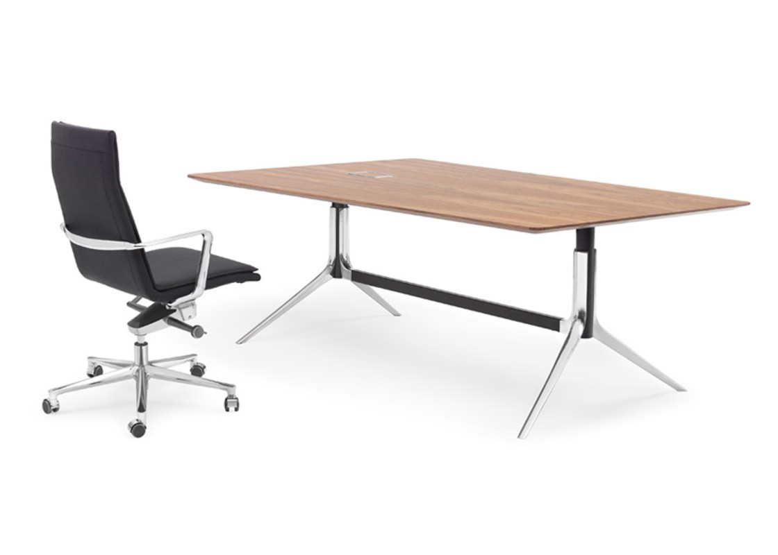 Every detail of NoTable speaks of subtle sophistication embodied by apparent simplicity. Die-cast aluminium legs stem dynamically from the floor to give the table its remarkable lightness. The legs are attached to a tubular vertical frame with an adjustable inclination that showcases the discrete yet high level engineering of NoTable. NoTable is a system that can assume a myriad of configurations. It can be an efficient and elegant single desk, or become a large table, designed to meet the need for modern areas where work groups can operate.