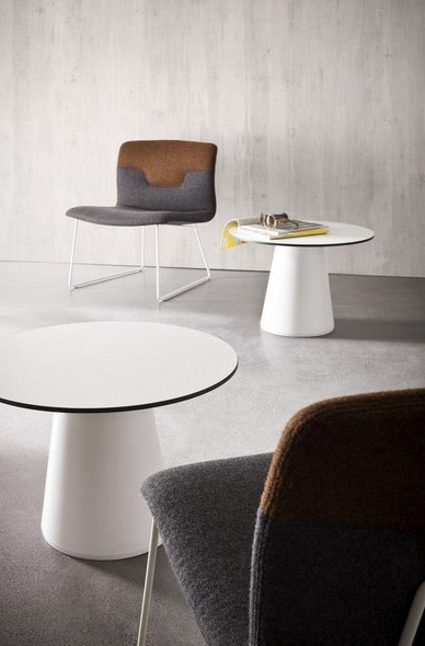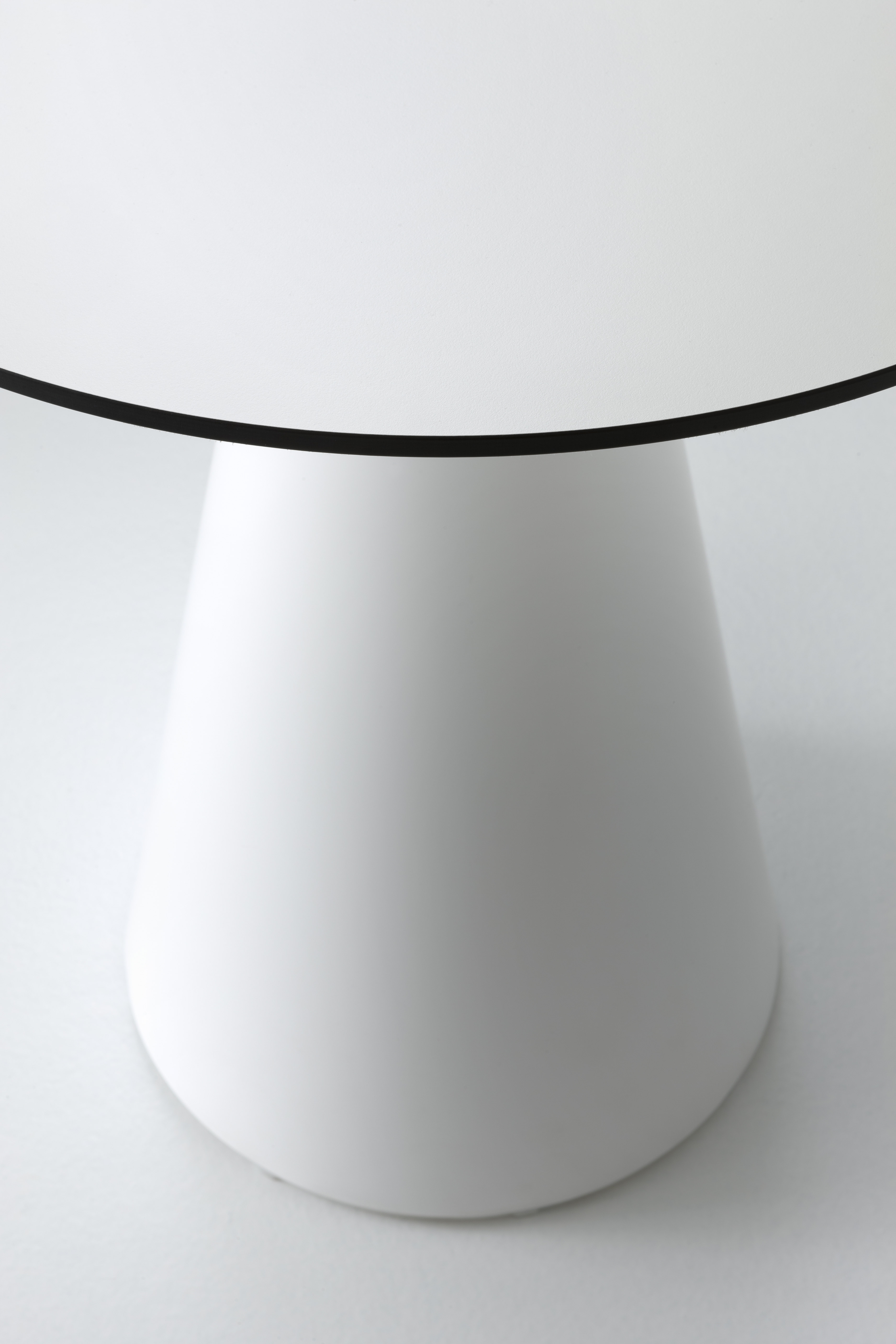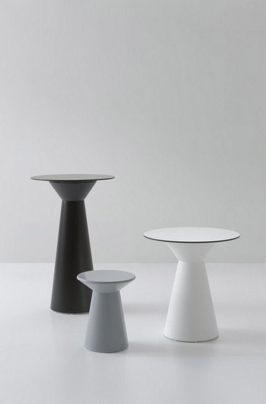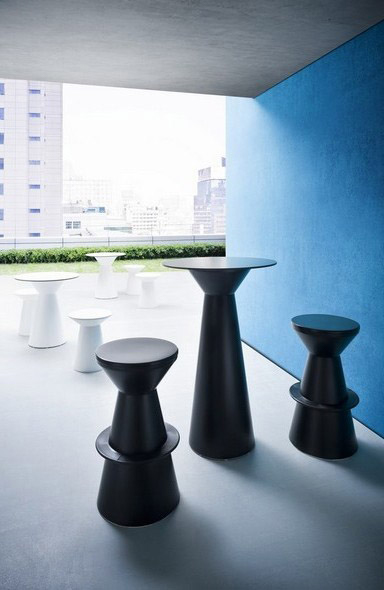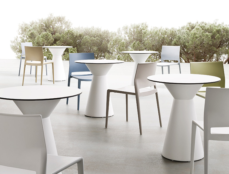 Tables, chairs, benches and stools collection. Compact top with technopolymer bases. Available illuminated and suitable for outdoor use.