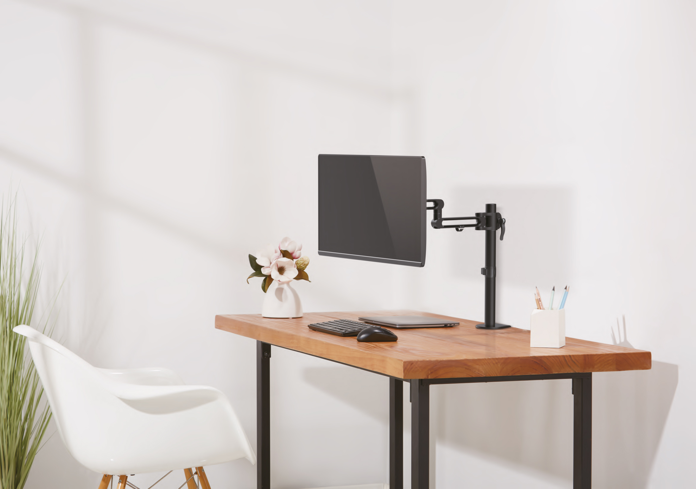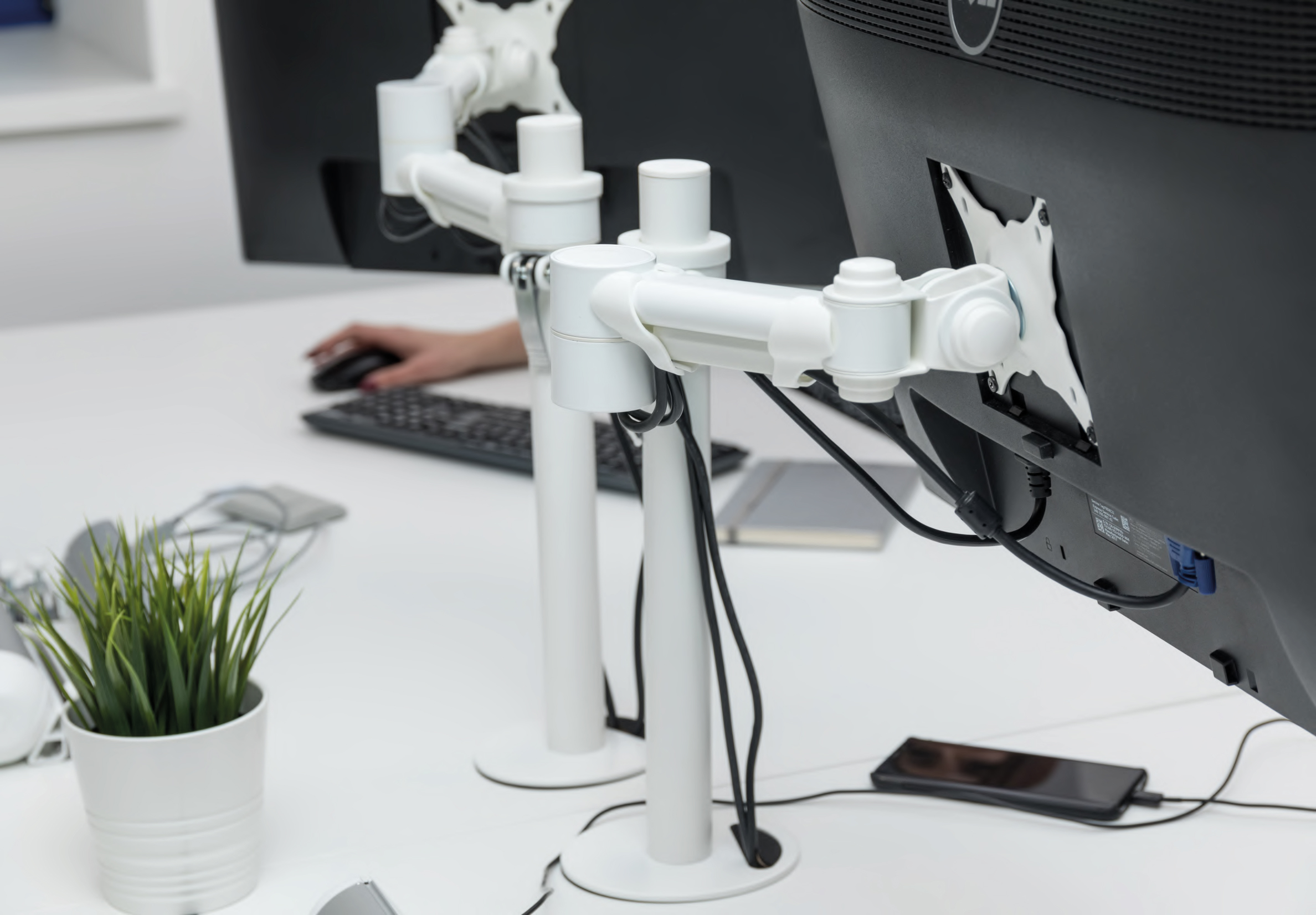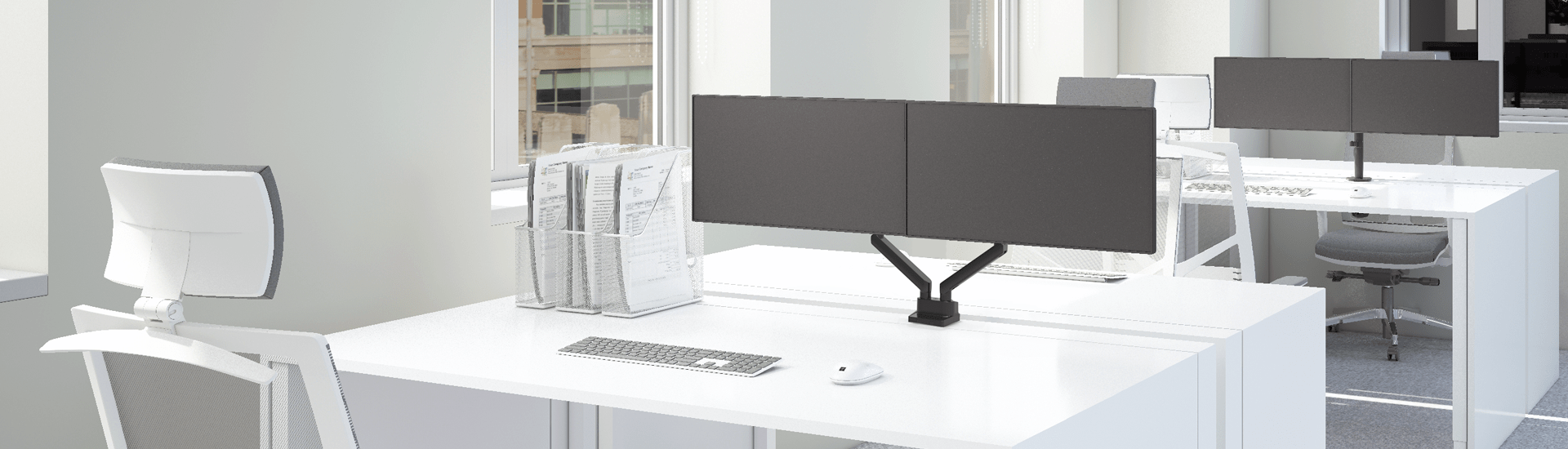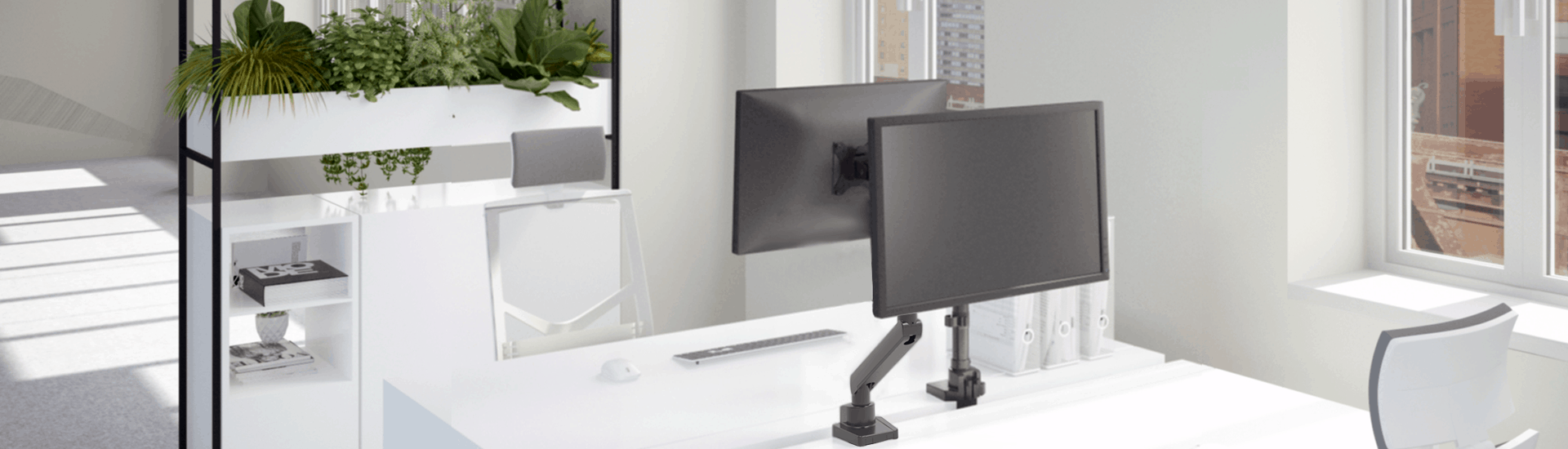The Sigma range is both a quick to assemble and easy to use monitor arm, facilitating the needs of single or double monitors. The effortless design allows the installer to fit the arm in minutes and the rotation/ swivel features make it easy to meet the needs of the end-user, as they can place the screen at the correct height to avoid neck and back tension. Sigma is available in white and black and is equipped with white or black inserts.