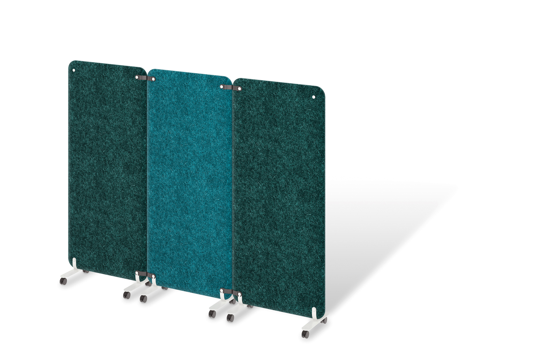 SOLANGE desktop screens and partitions allow for the creation of private areas within a larger shared workspace, favouring concentration. Thanks to their highly effective sound absorption qualities, these acoustic screens and partitions significantly reduce the disruptive impact of ambient noise, whilst at the same time providing an aesthetically harmonious backdrop to the workspace.