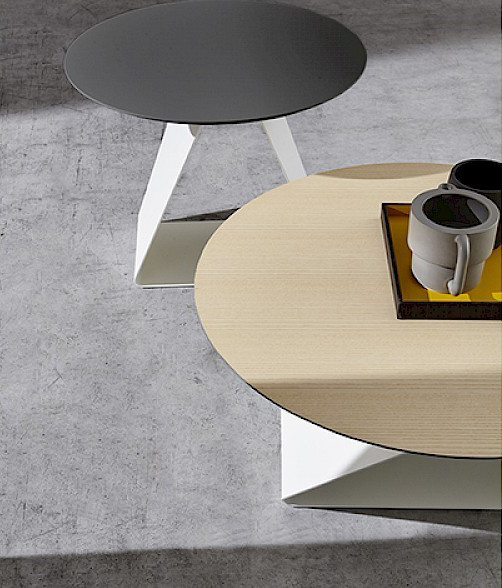 Equilibrium of shapes and perspectives. Tov, Dorigo design, is the collection of tables for every type of space which can be integrated seamlessly in any contexts, from office to contract and the home. Available in two different heights, with contrast base and top, the Tov collection symbolises a tribute to the eternal beauty of design details.